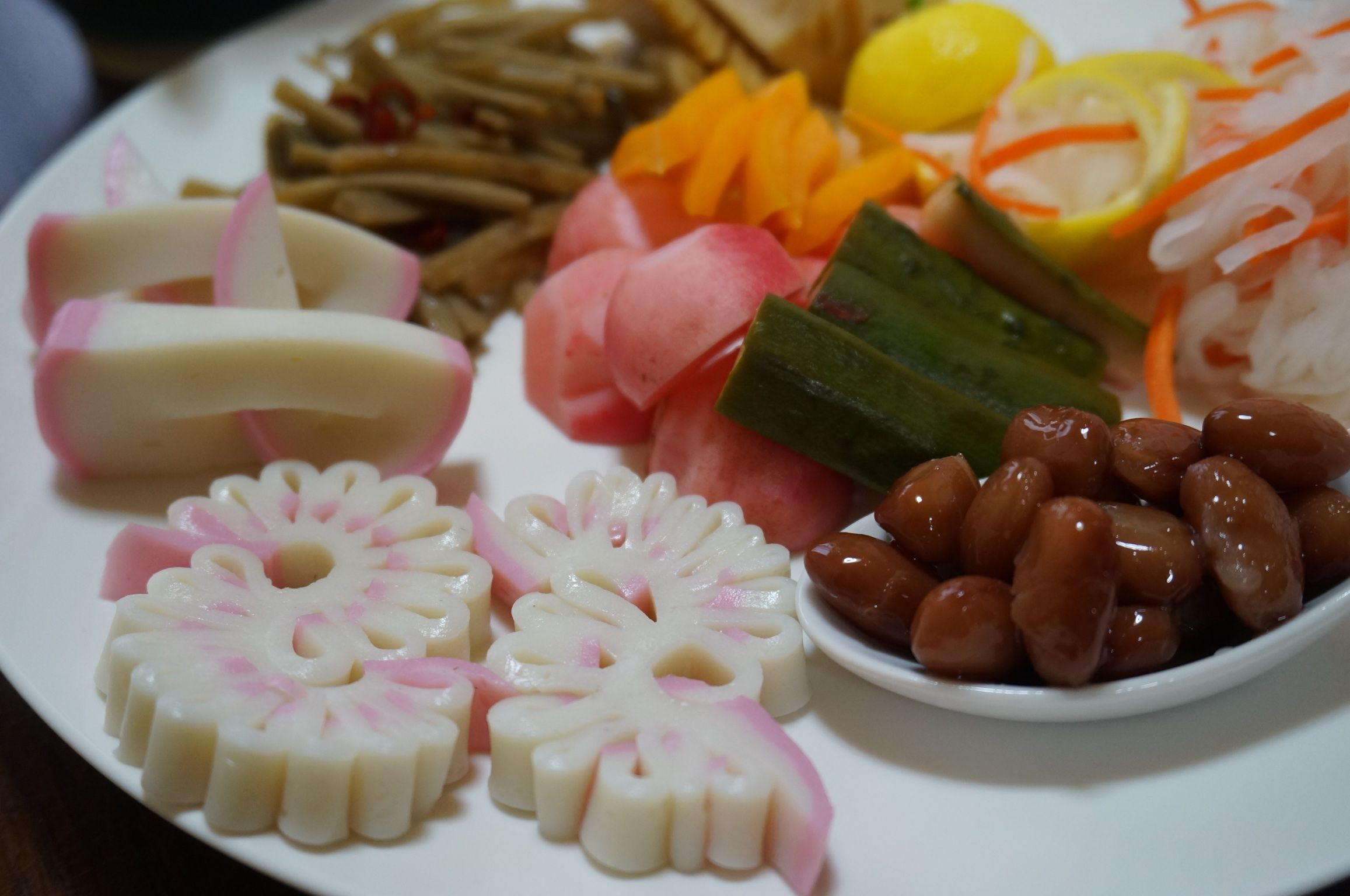 蒲鉾の飾り切り。久方ぶりにやってみた。 鶴っぽいと思ってたのに、鶴ではなくて、松飾りなんだって。