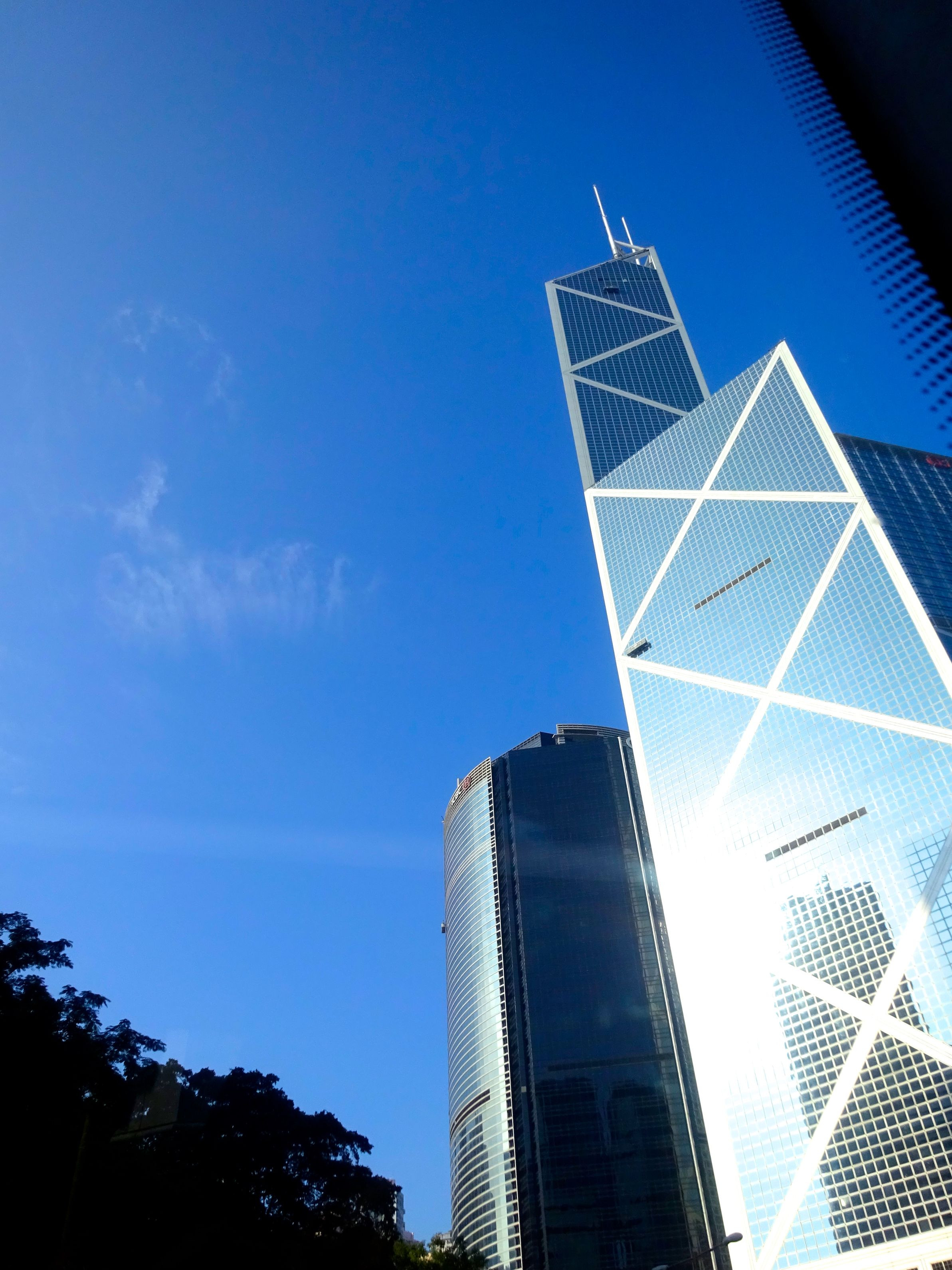 バスの中から香港の中国銀行を写す