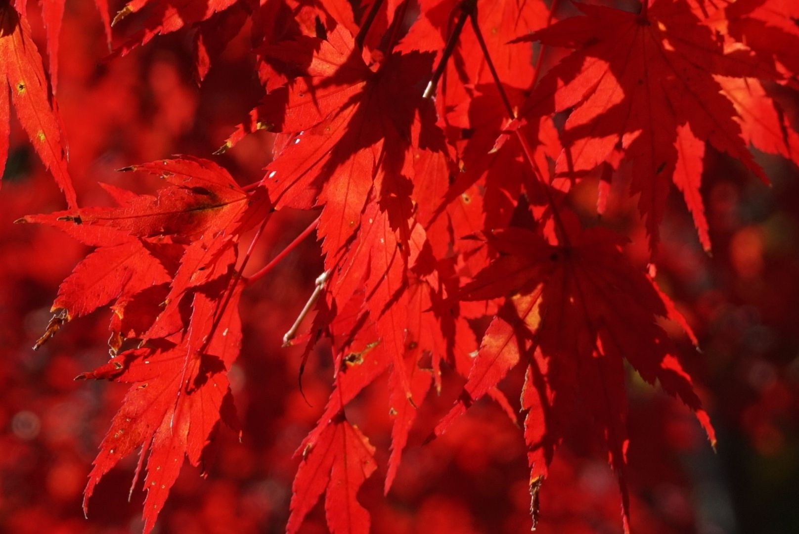 太陽に照らされた紅葉の赤に圧倒されました。