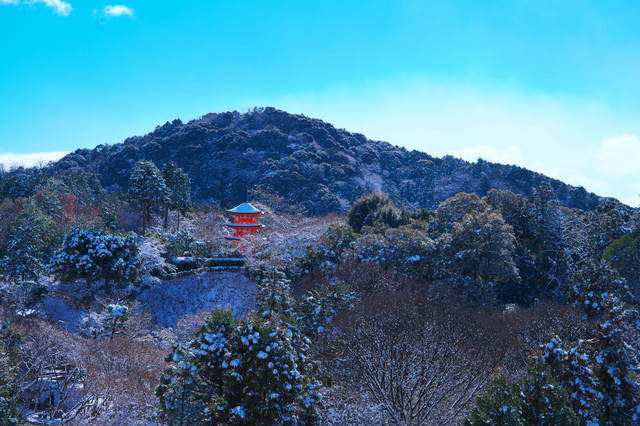 雪化粧された清水寺