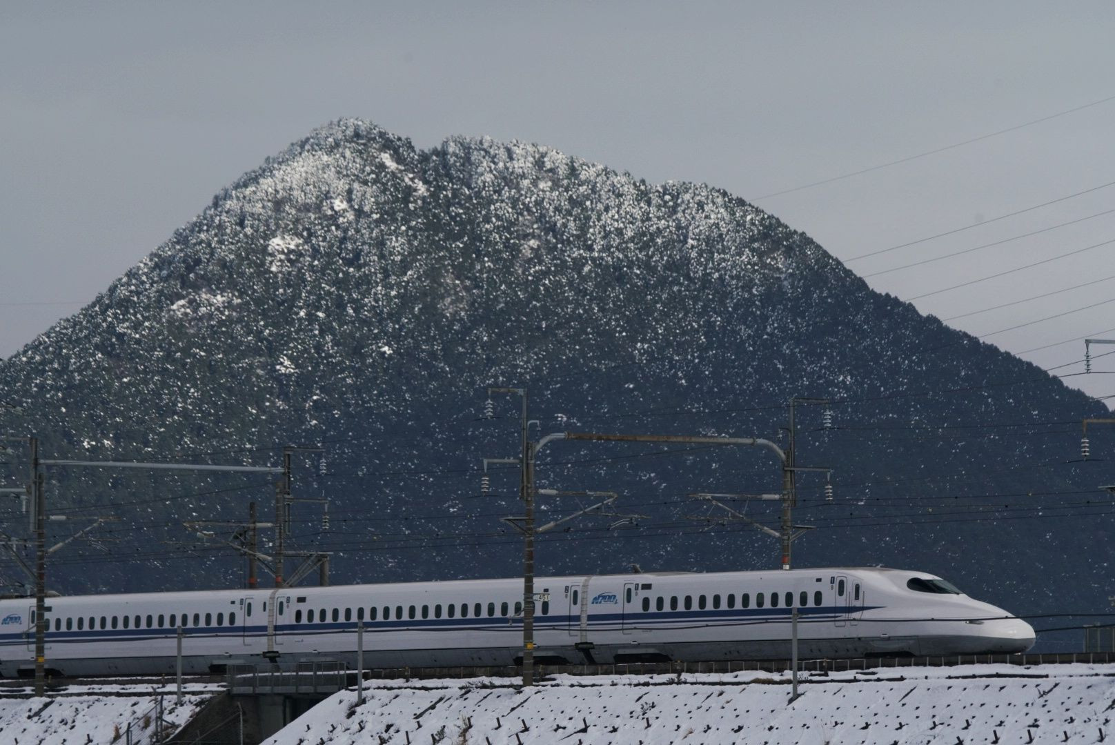 2017年初の寒波で、滅多に冠雪しない近江富士も真っ白に。 17日にやや融雪し、富士らしい塩梅で狙いました。