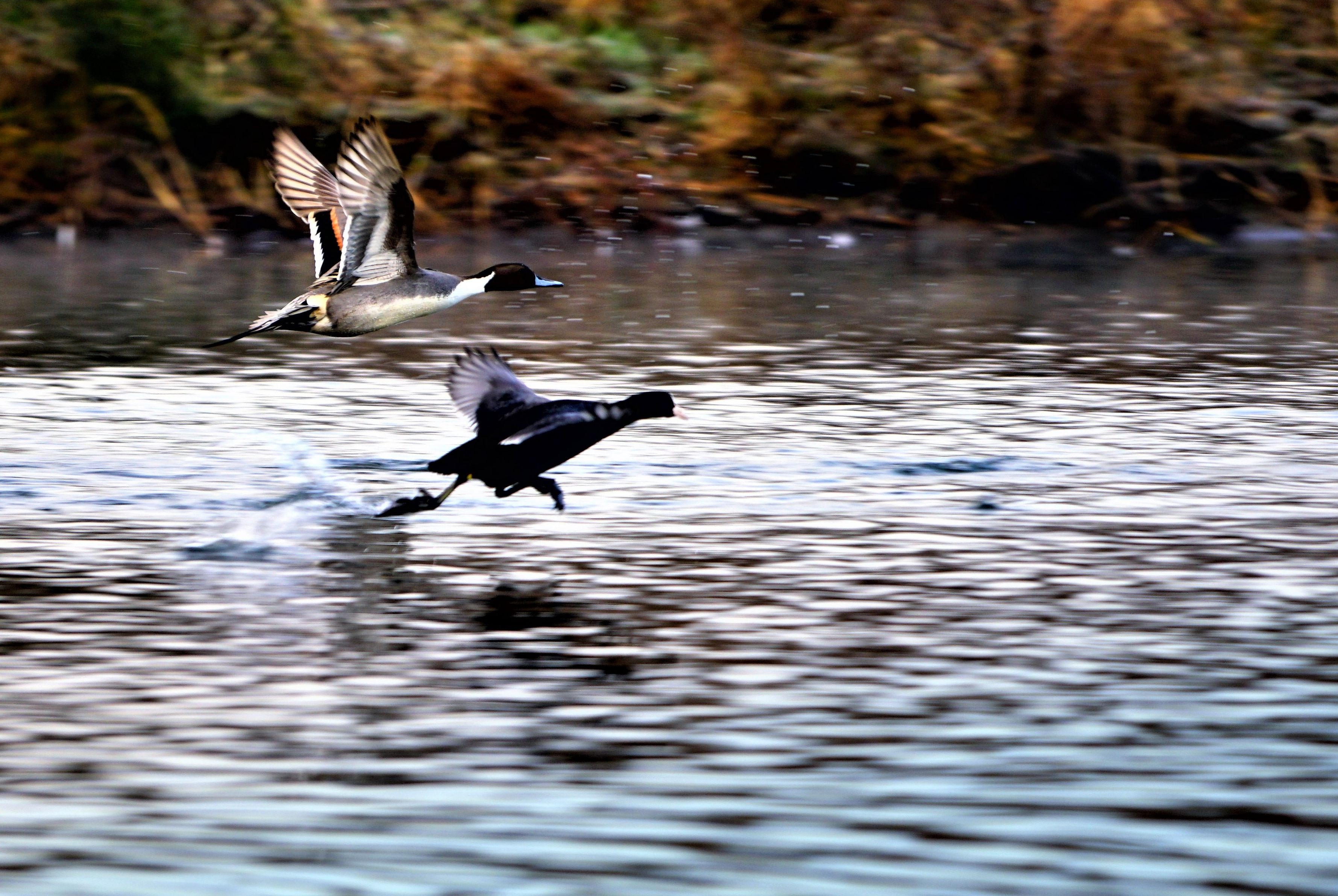 オナガガモとオオバン、 さて、結末はいかに!