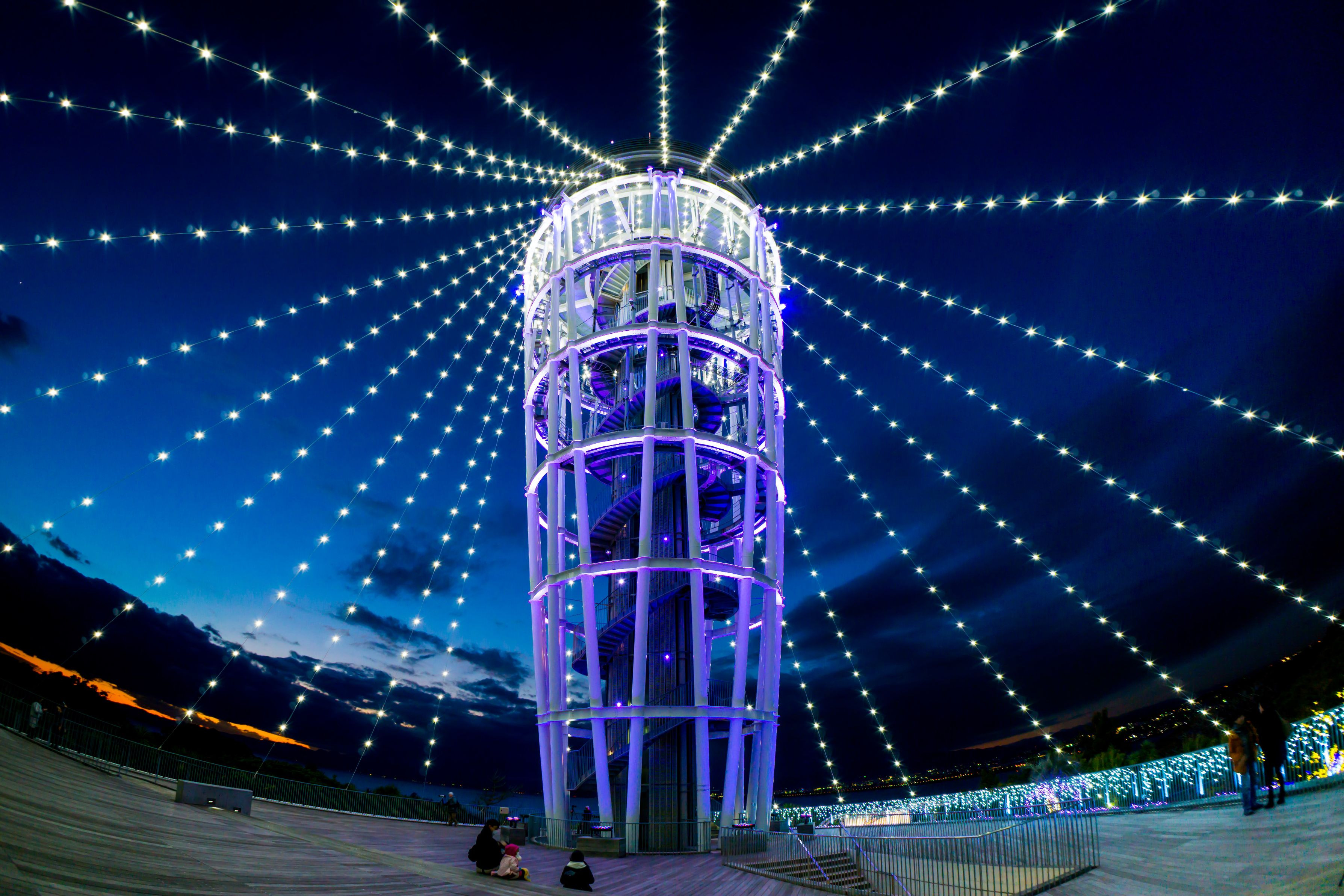 前作に続き、日の入り直後のシーキャンドルです。 全景も良い感じだったので、アップさせて頂きます(^^)。 正面のチビちゃん達の良い思い出になったと思います♪♪。 フィッシュアイコンバーター(VCL-ECF2)使用。