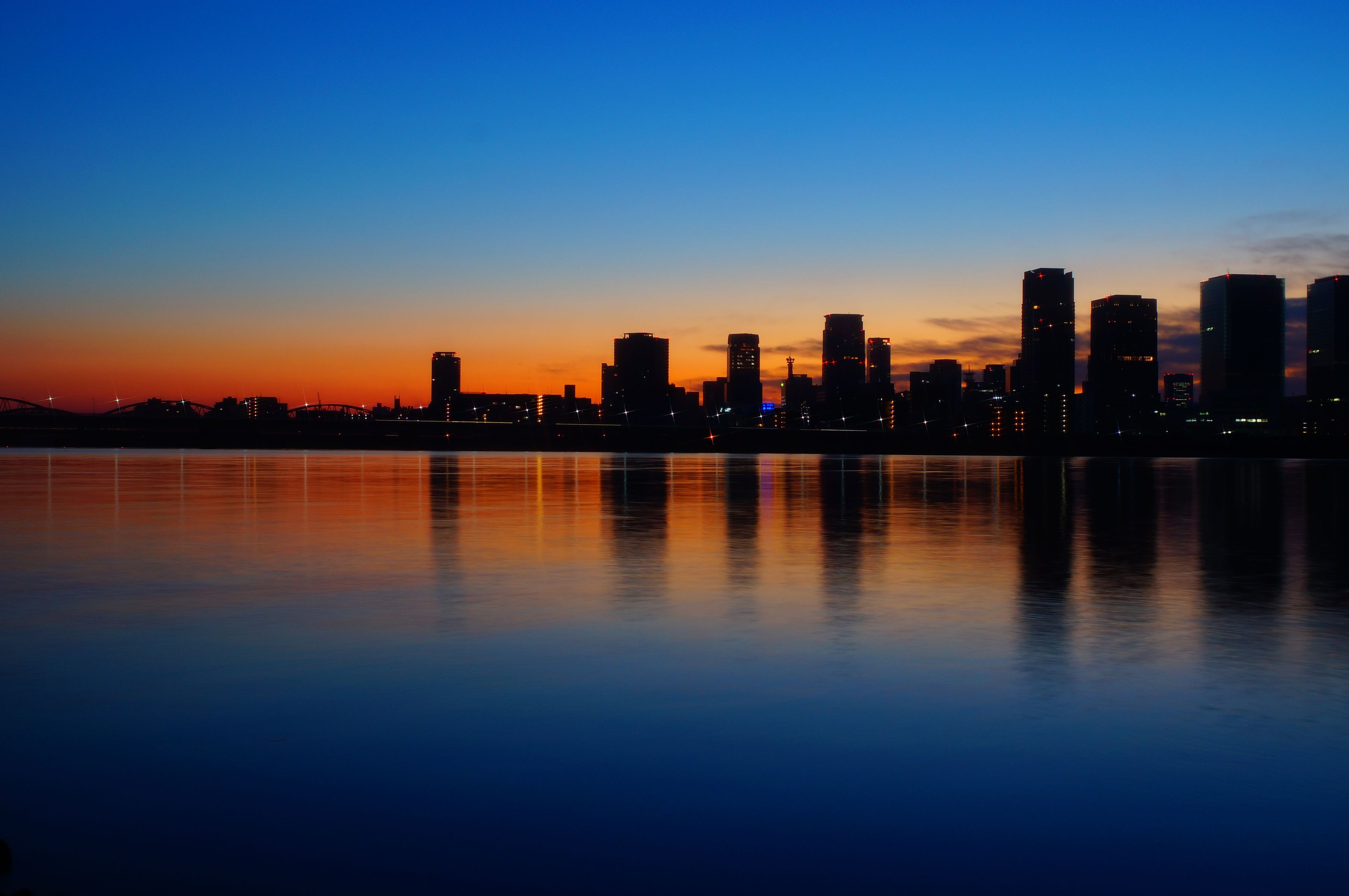 梅田高層ビルと淀川の朝!カメラを手にしたくなる時間をテーマに。。。!
