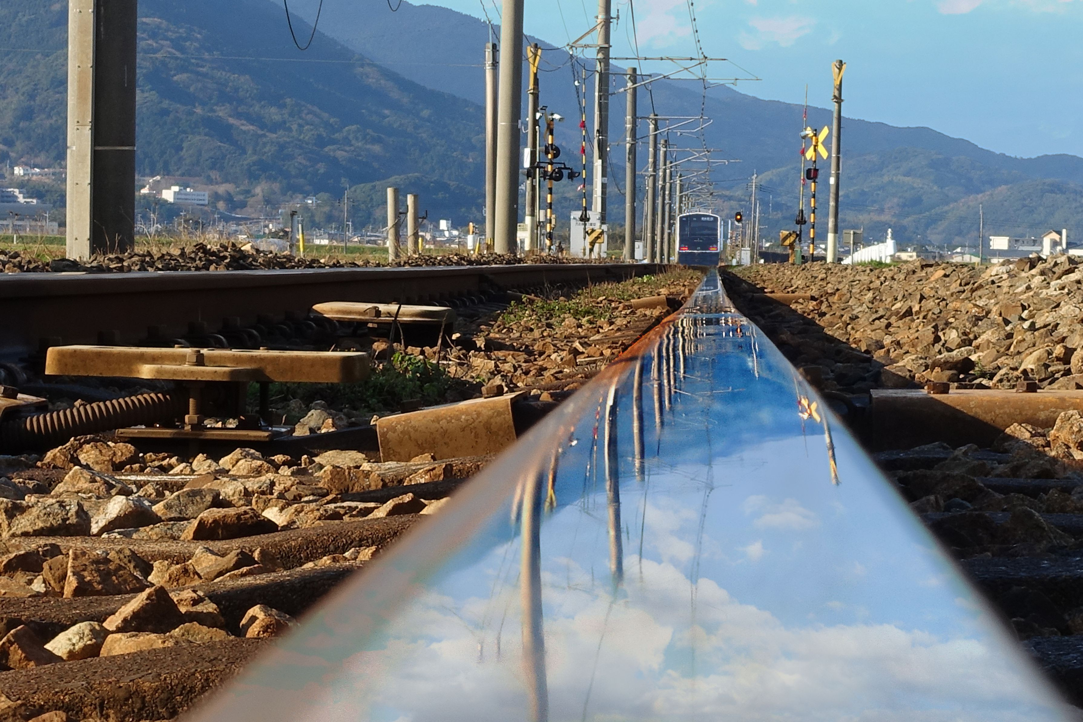 踏切内で遮断機が上がった瞬間を狙いました。