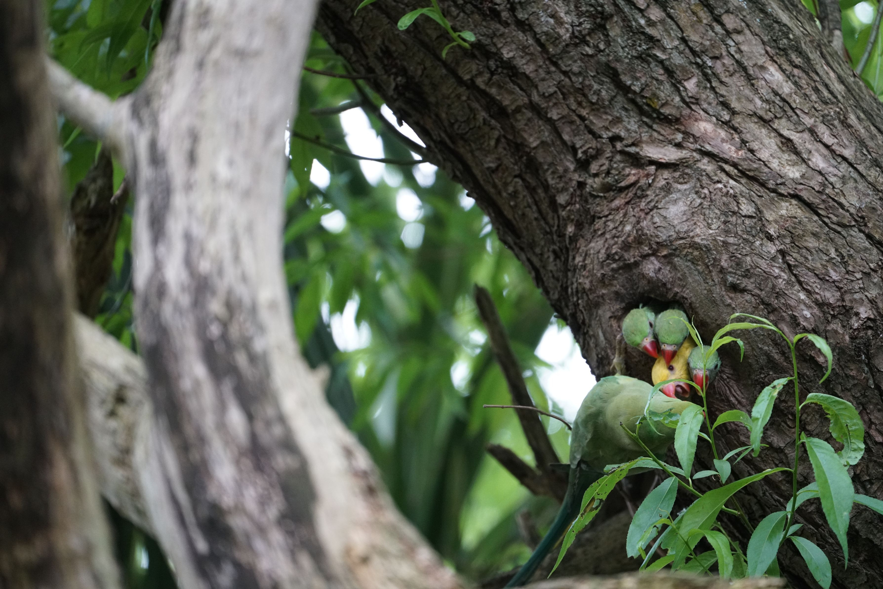 こちらの写真もニュージーランドで撮影しました。 野生でインコが木のうろで子育てをしていて驚きました。