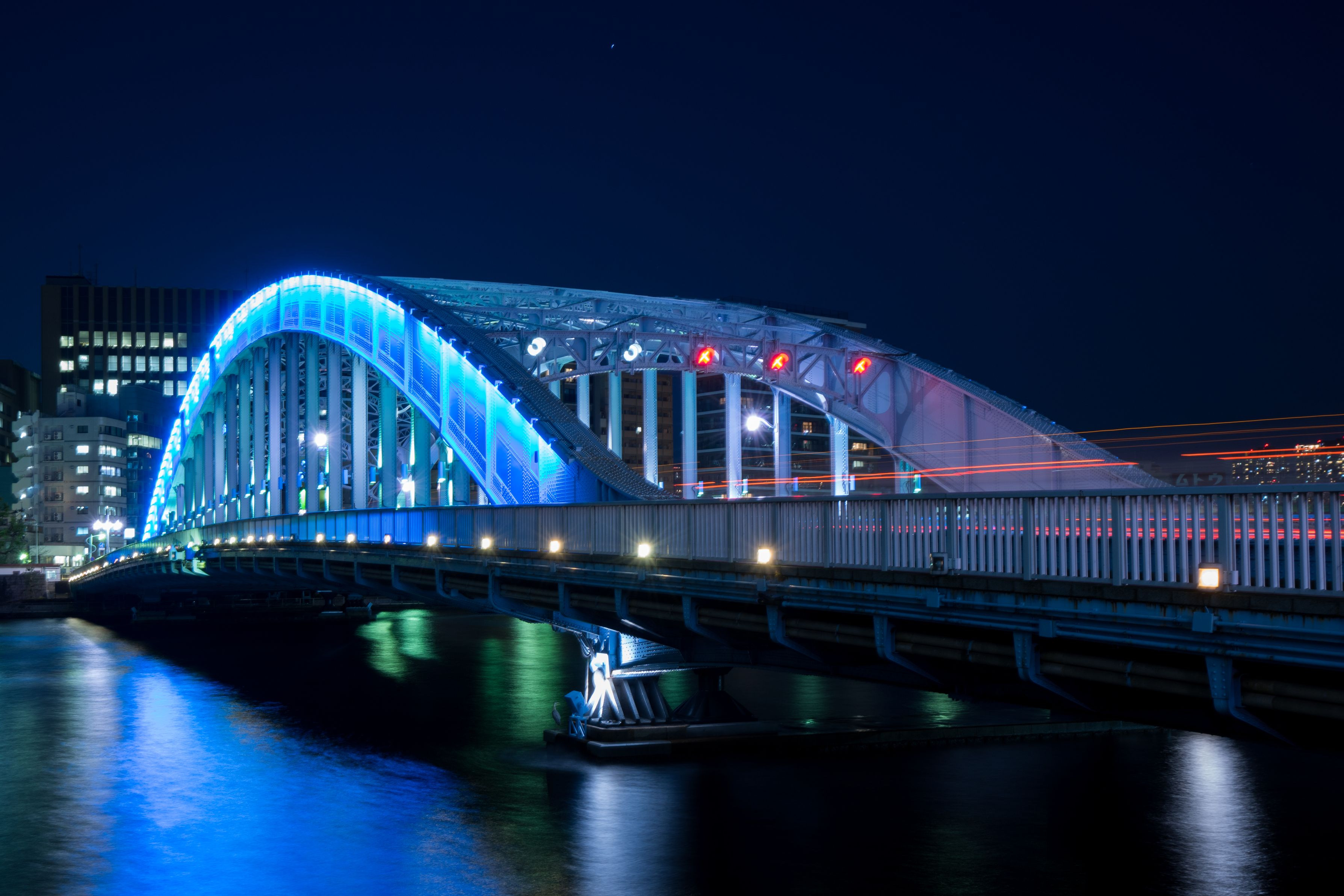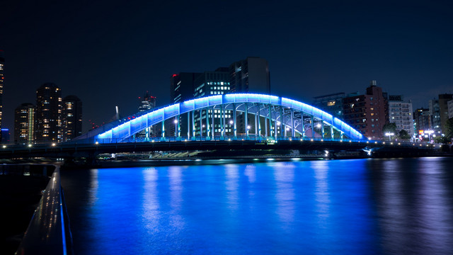 青く光る永代橋の夜景三景です。