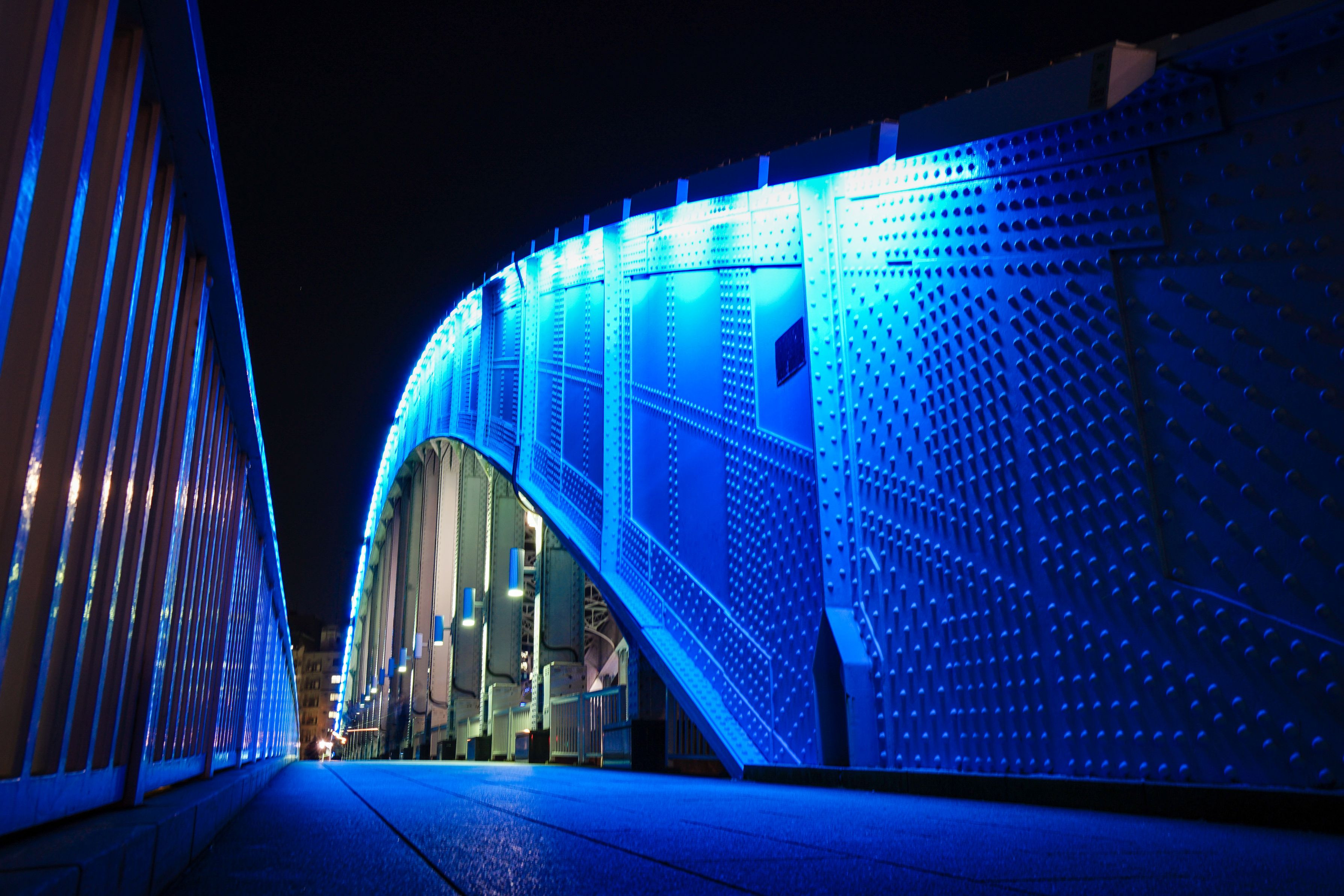青く光る橋