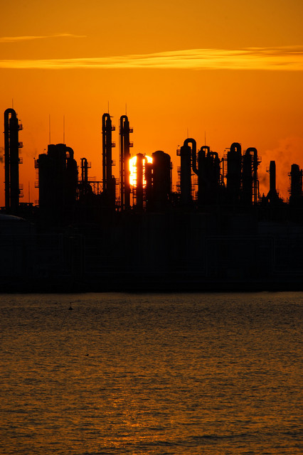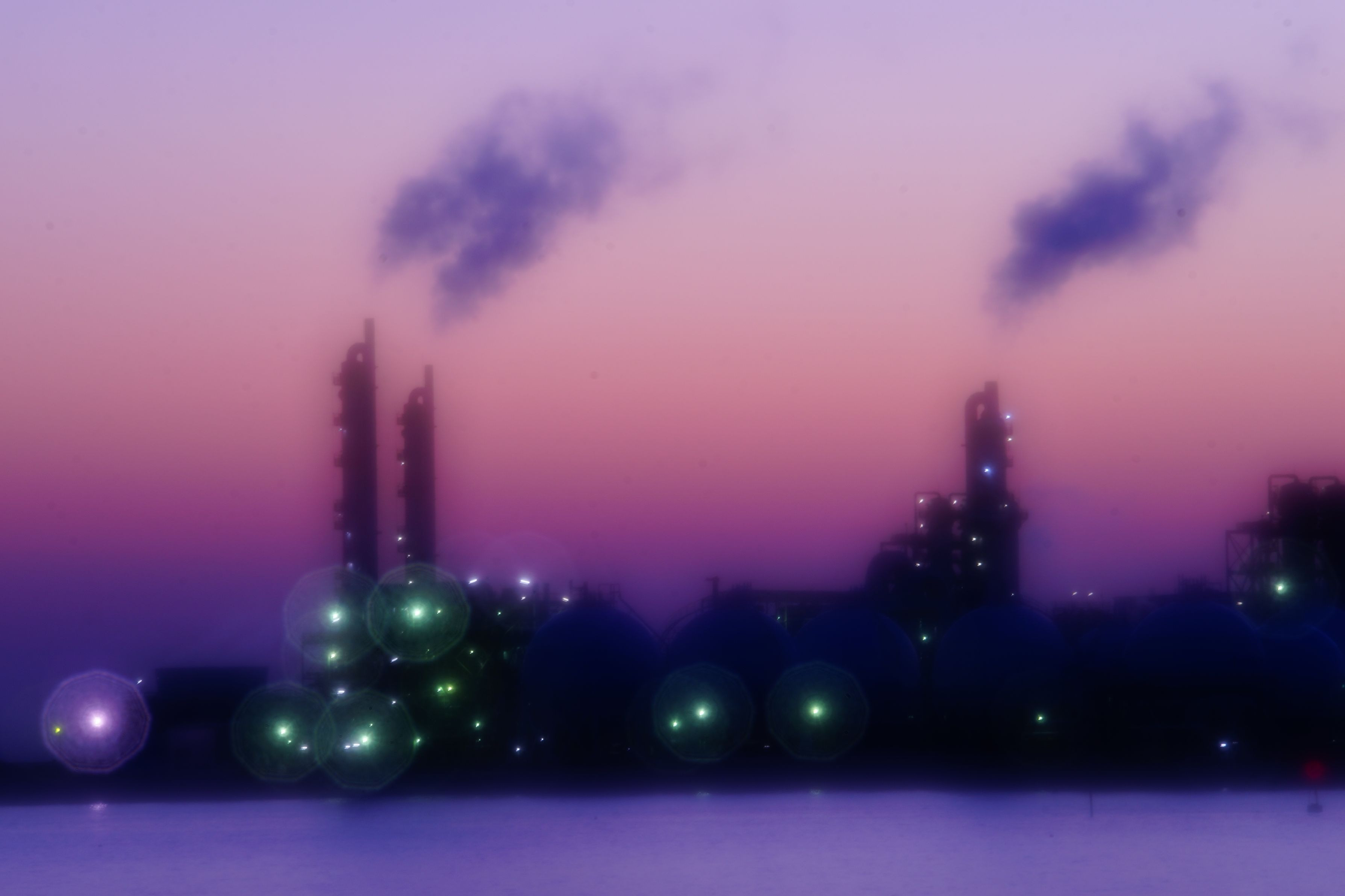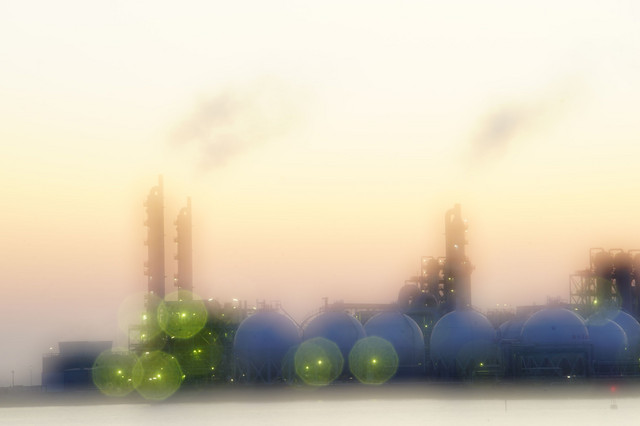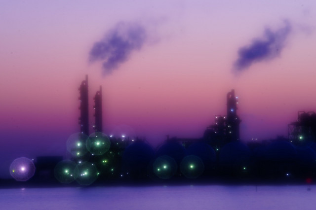 factories after sunset