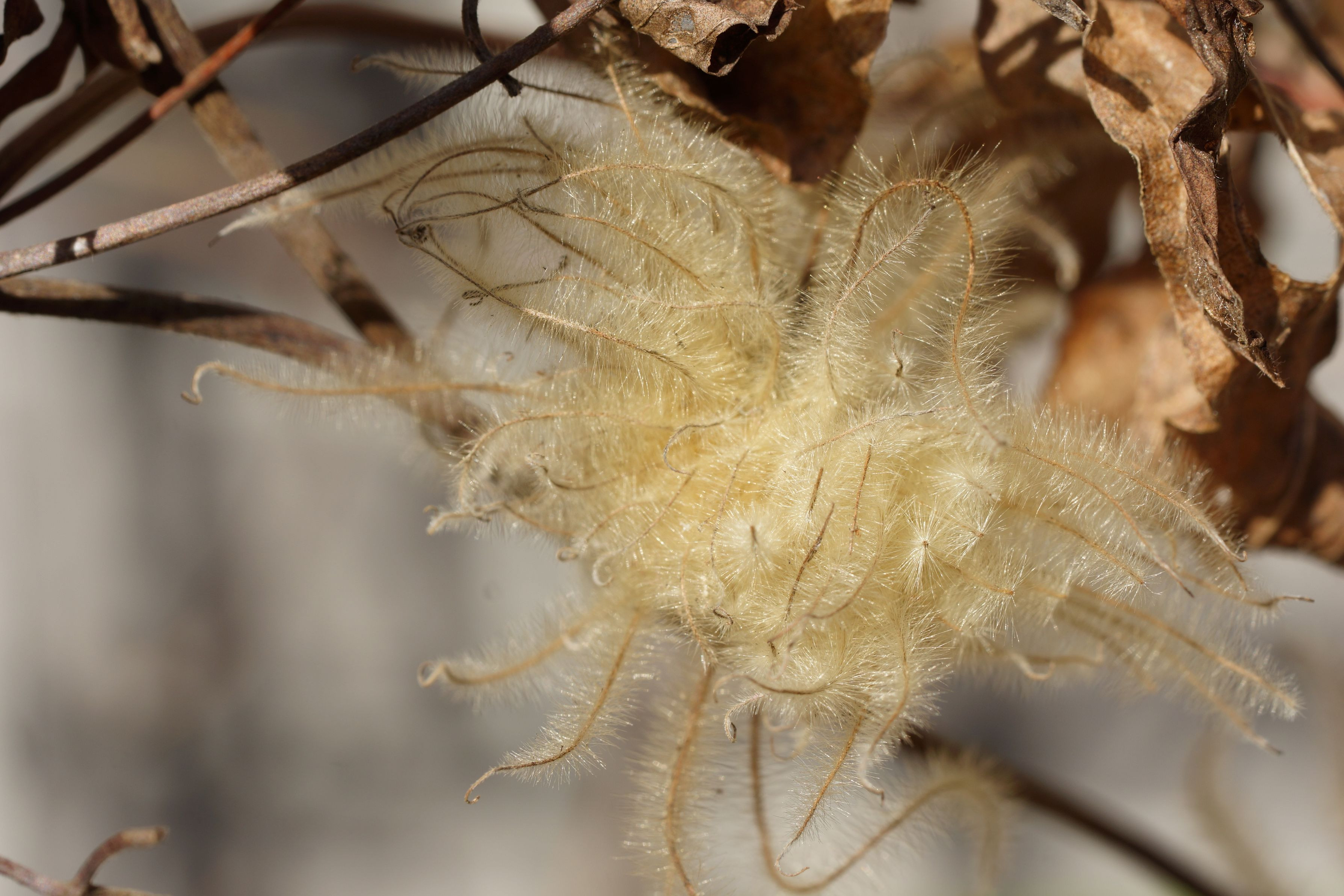 越冬のクレマチスの種が 冬の日差しに キラキラと・・・
