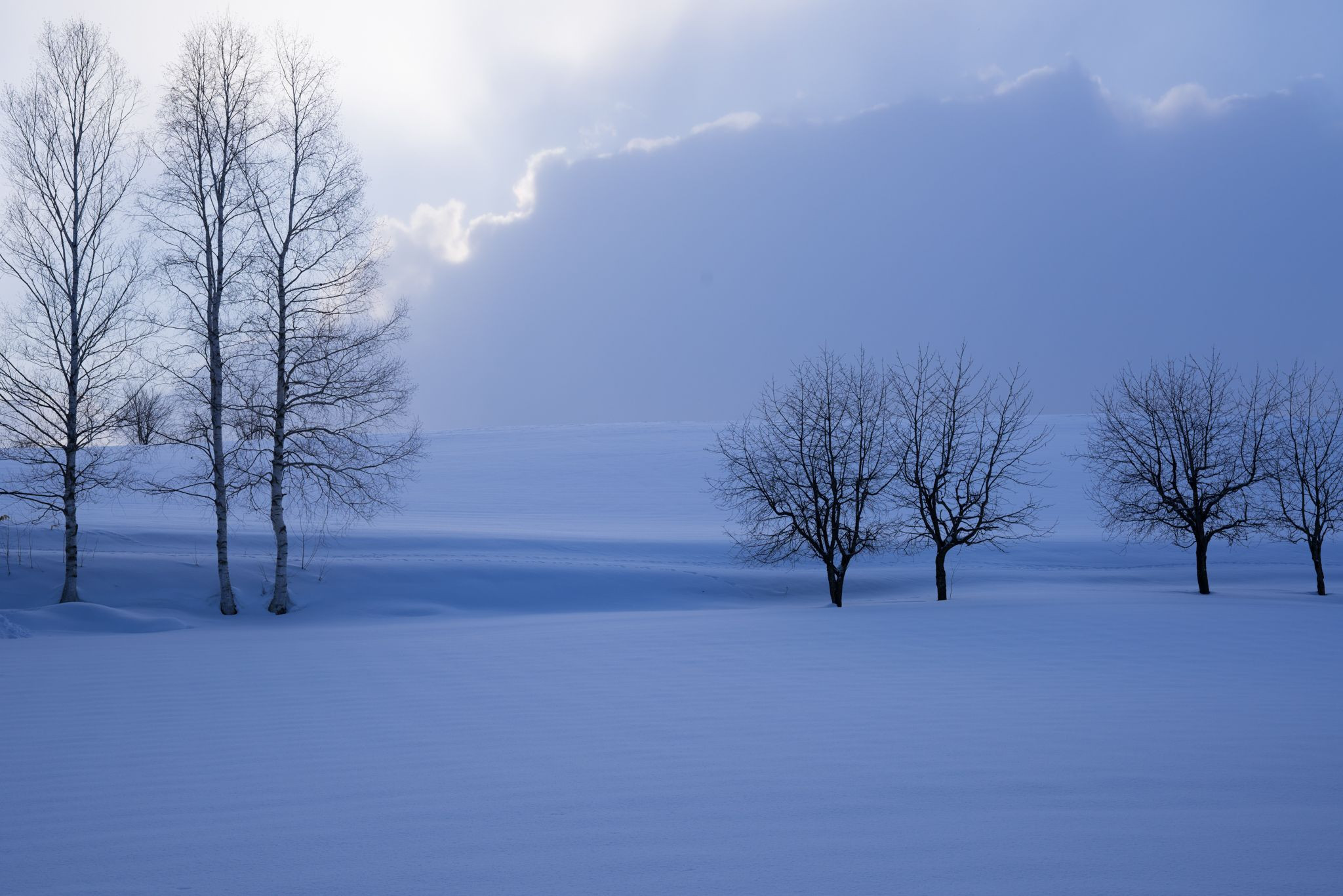 今年で3年目の美瑛の冬。 拓真館の庭の白樺とさくらんぼうの木に会うと、ああ美瑛にやって来たのだなあと思う。