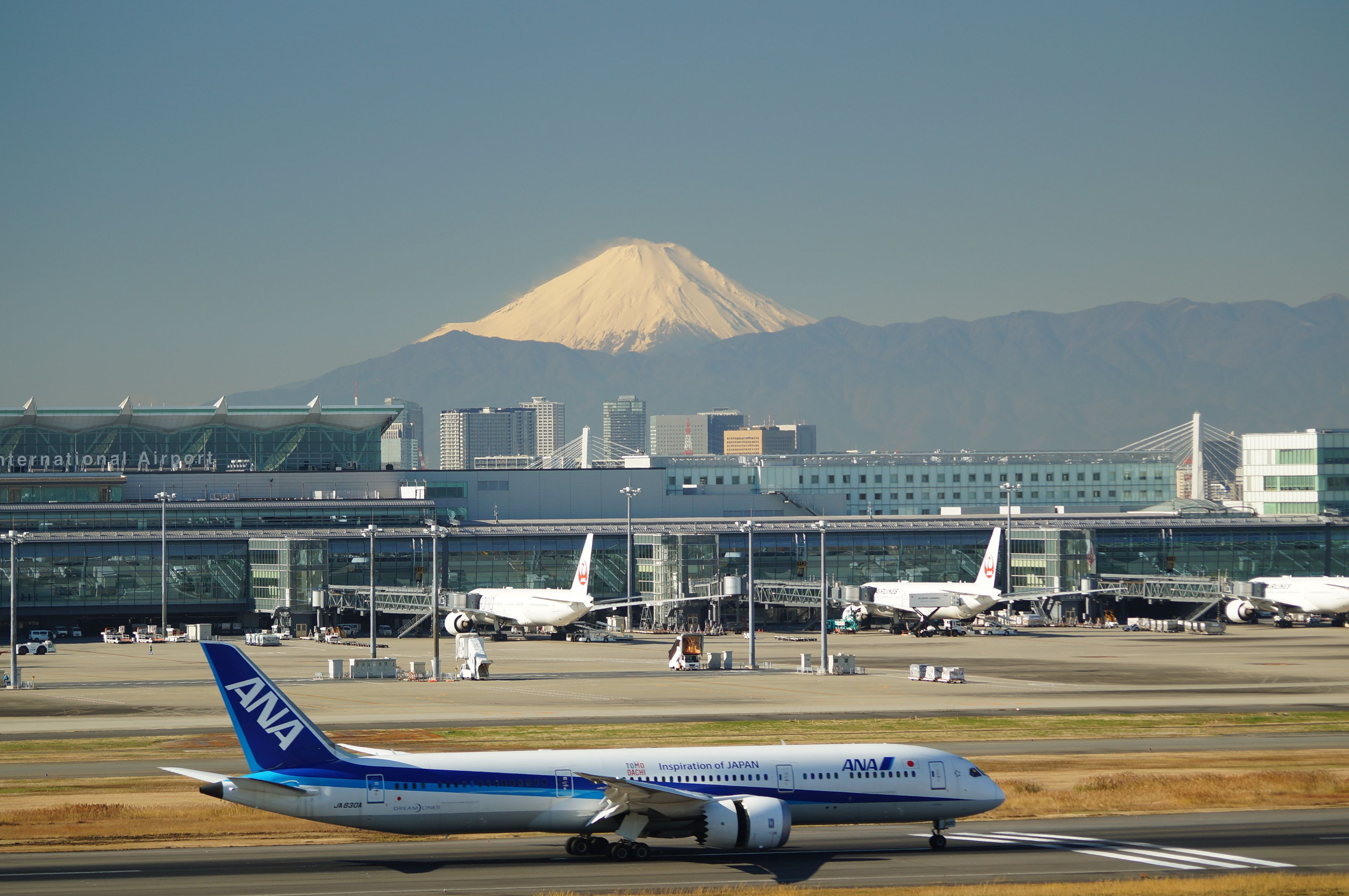 製品情報>My Sony>αcafe>羽田ターミナルからみた富士山とANAのコラボ(あおけんさん)