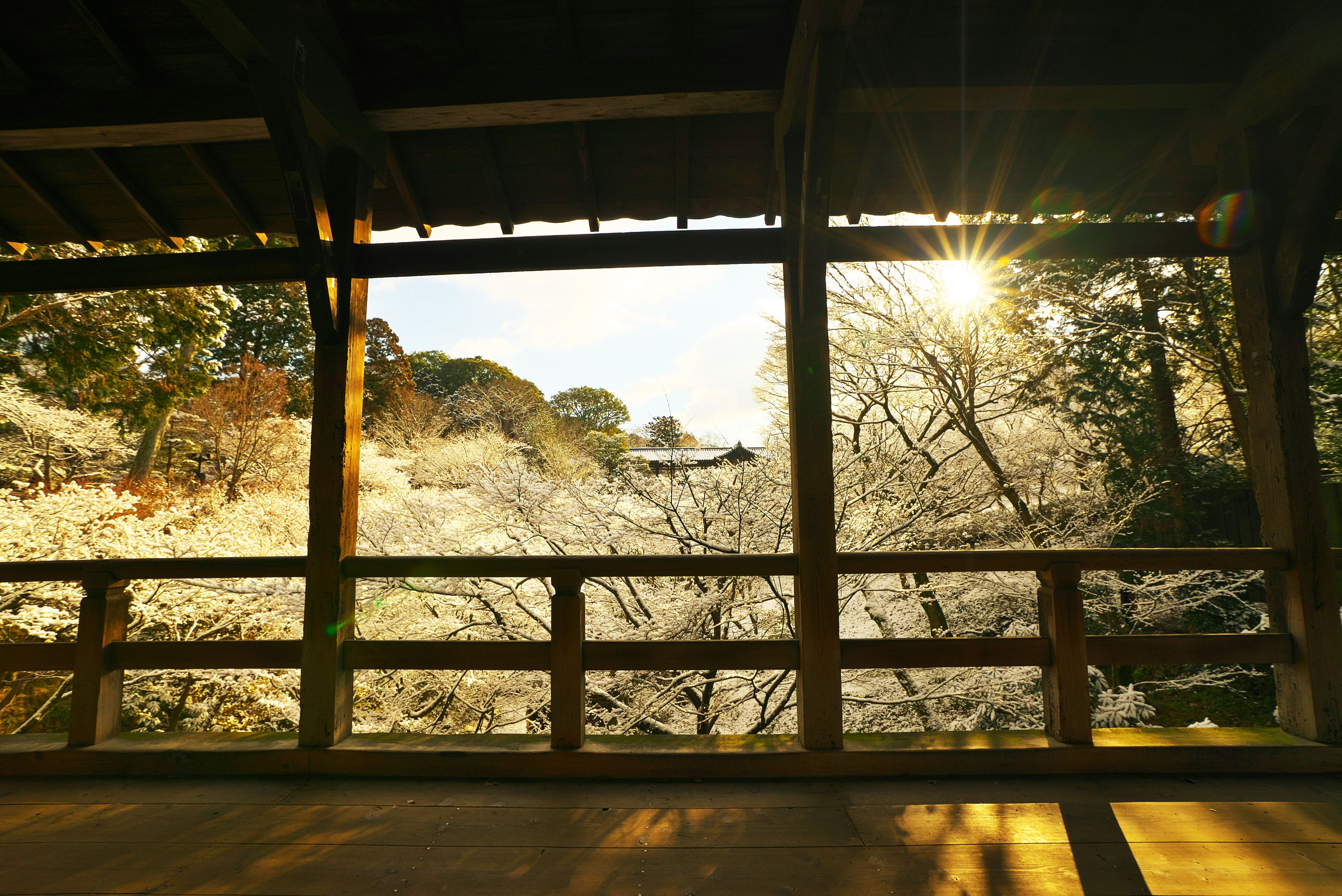 朝日に照らされて雪景色が輝いてました。