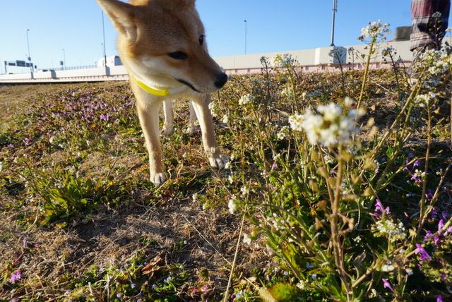 クンクン。 初めての春のかおり。