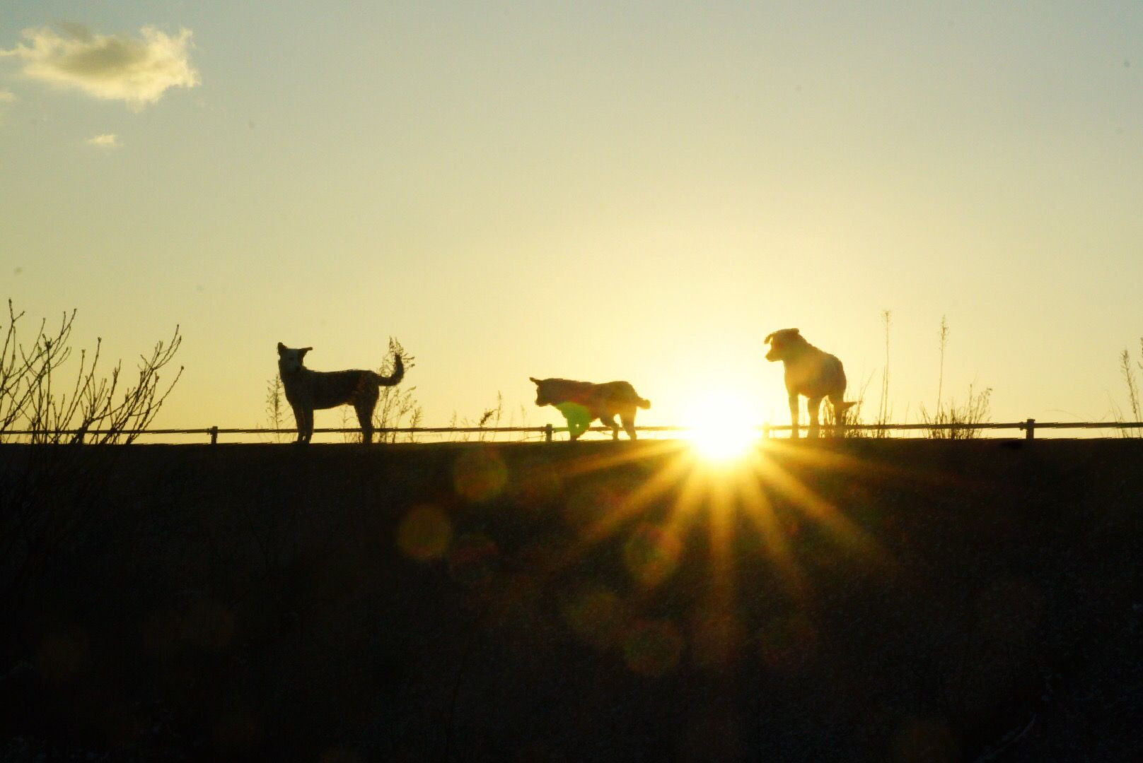 朝日を撮っていたら野良犬の縄張りだったらしく、犬達が徒党を組んでやって来た‼︎ 即退散…なんだか犬達、満足そう…(笑)