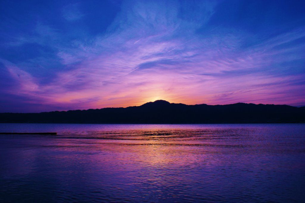 琵琶湖の夕焼け 紫のフィルターで撮影 こゆ色が好きなんでしょうね〜