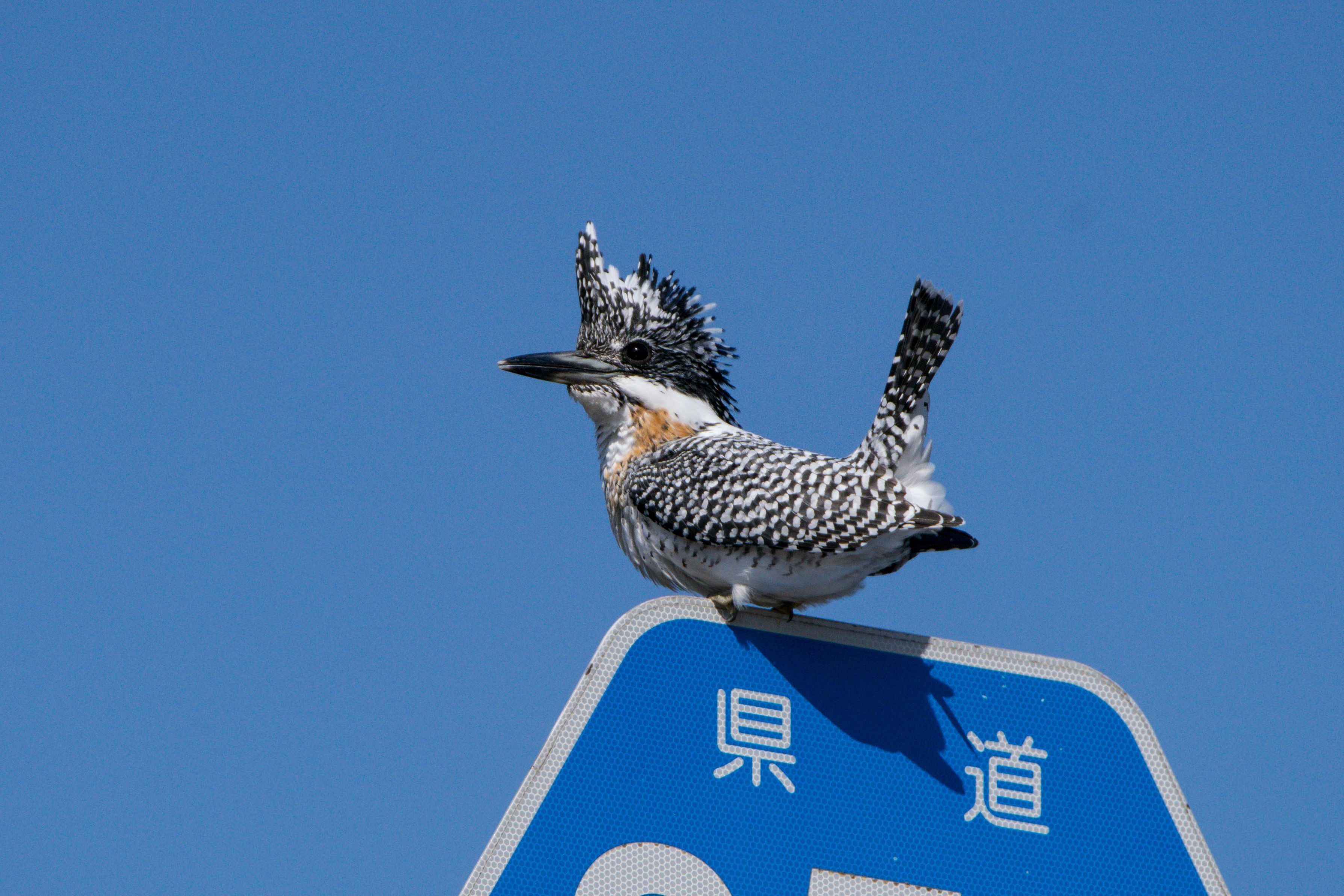 見晴らしがいいので最近のヤマちゃんのお気に入りの場所です 場所が特定できそうだったので標識はトリミングしてあります(^^;;