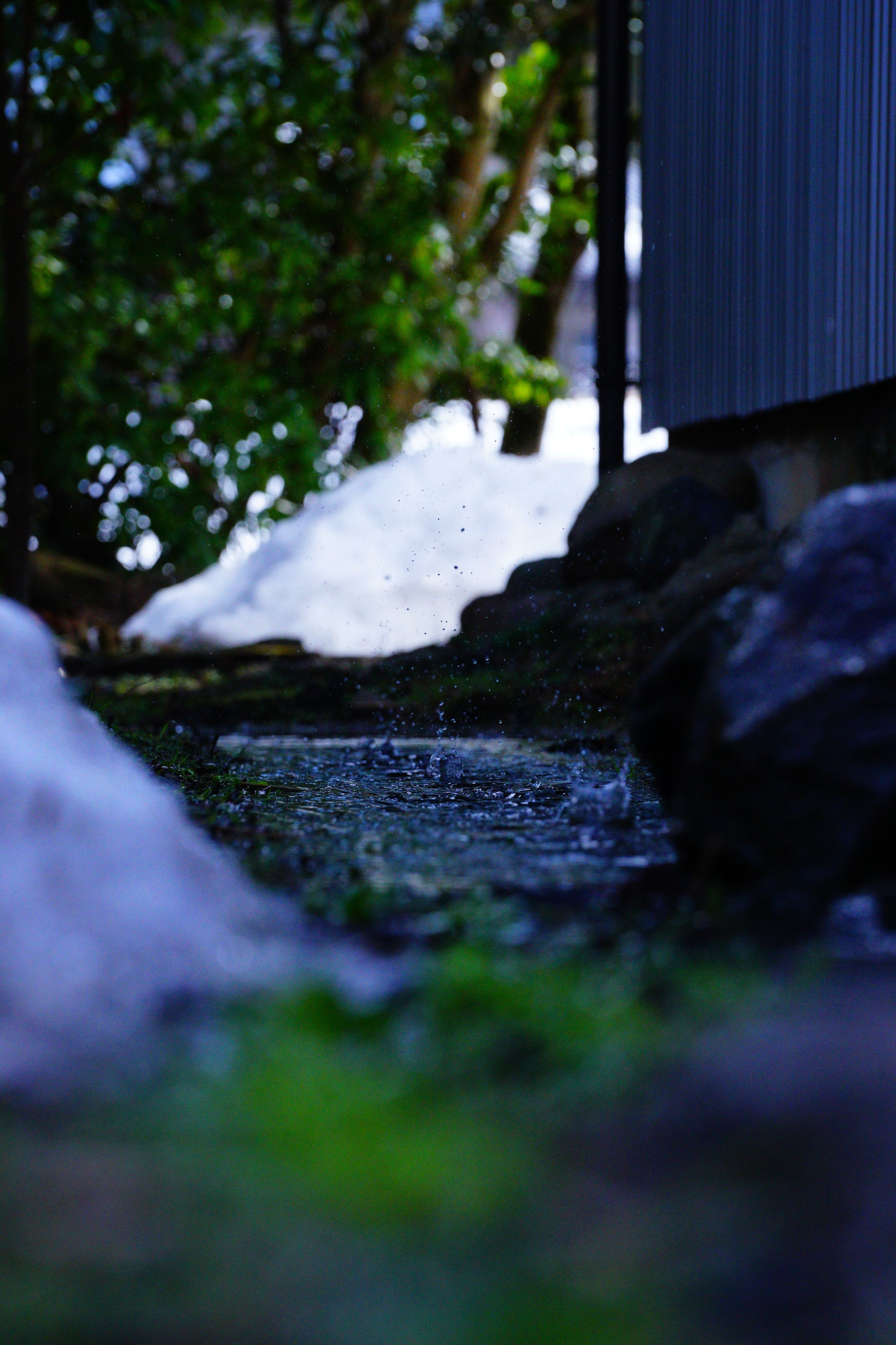 このところ気温が上がっており、一気に屋根雪が解けました。 近所の納屋から落ちる雪解け水です。