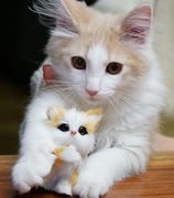 友人宅に1ヶ月前にやってきた子猫ちゃん。 似た人形との2ショットw まだまだやんちゃでじっとしていない~