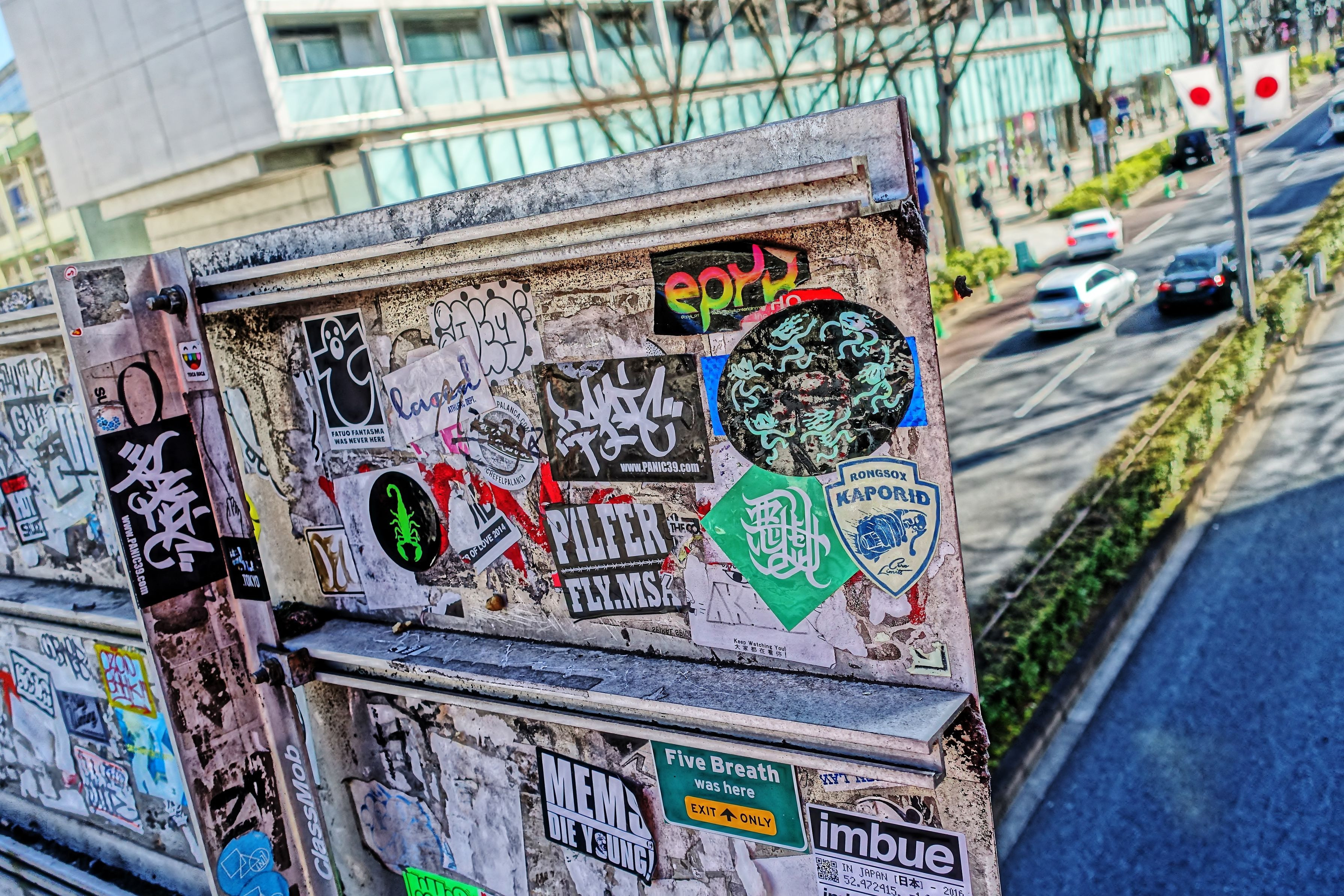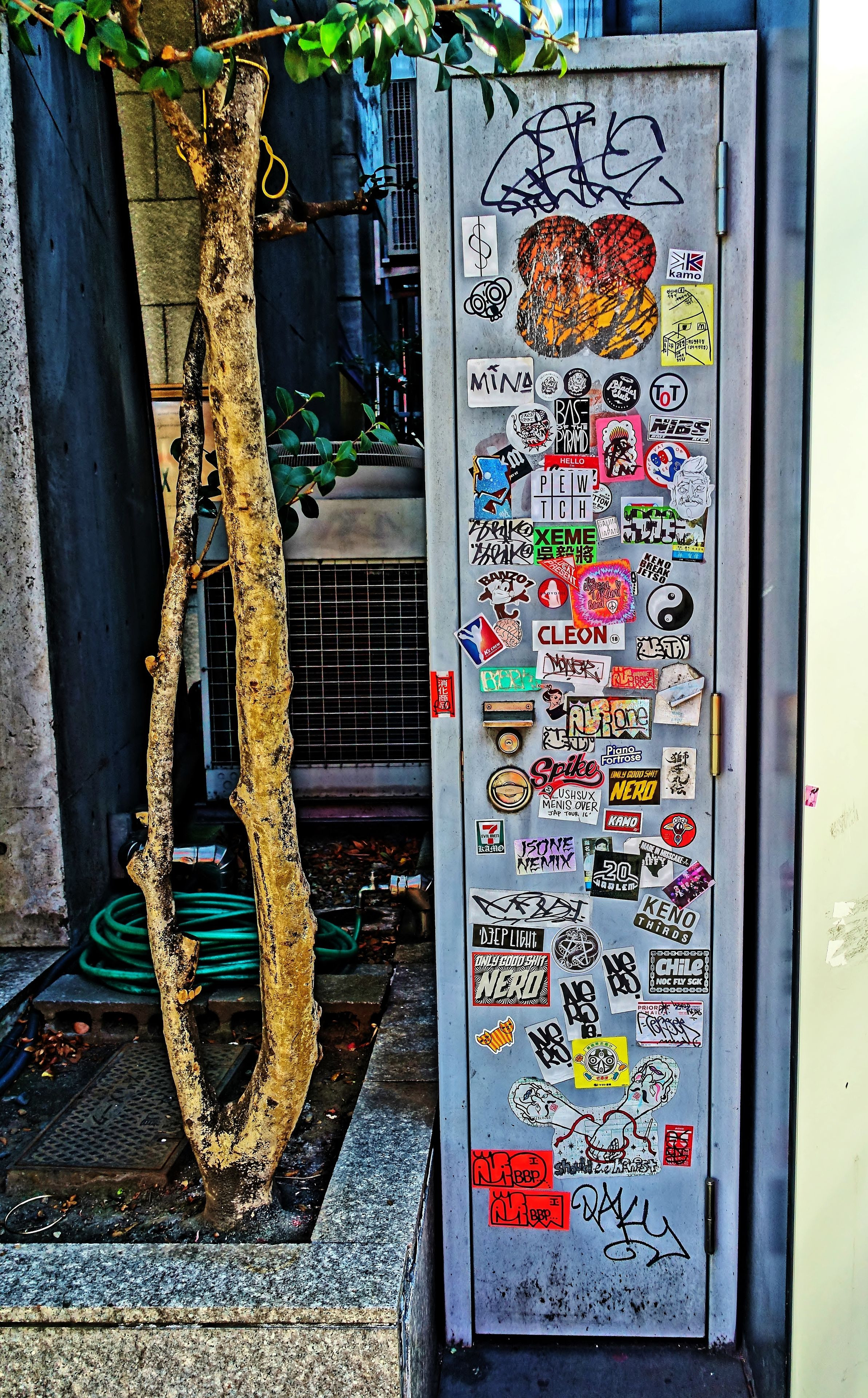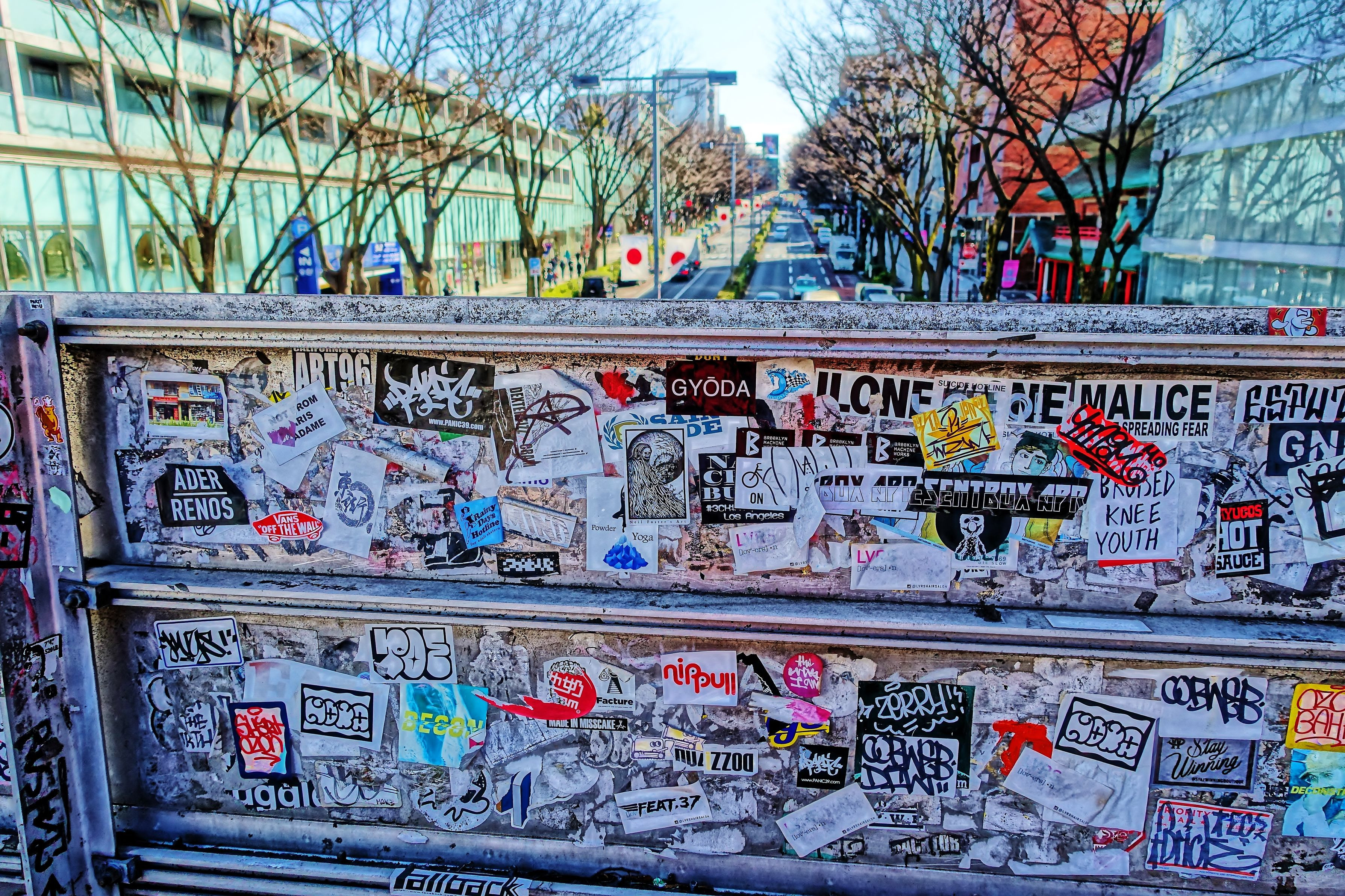 無造作に貼られたステッカーも… オモシロイです (^^♪ やっぱり表参道はオシャレ〜〜