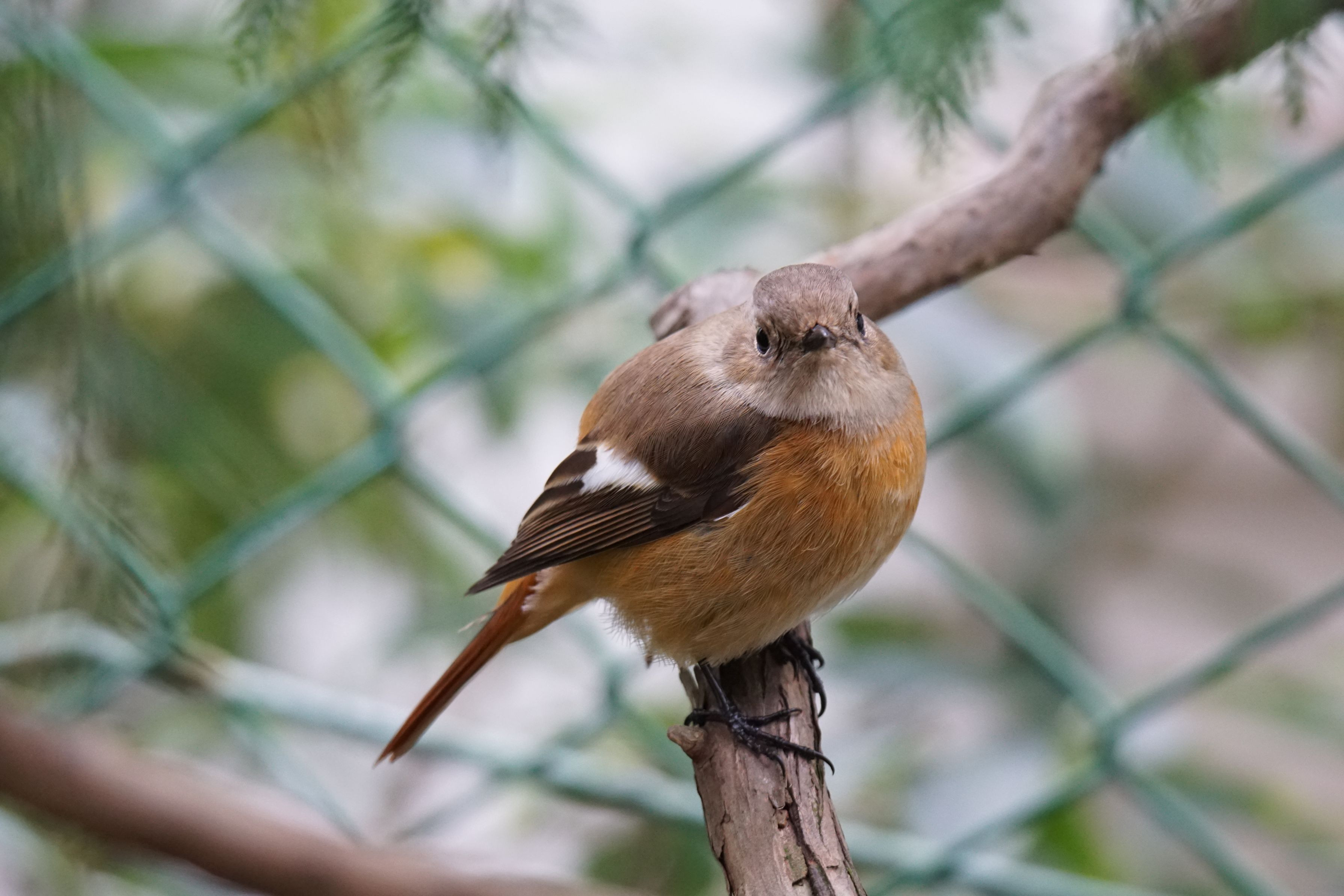 人の背丈位の庭木が数本ある狭い庭なのですが、小鳥がやってきます。普段はシジュウカラ、メジロ、ヒヨドリとかなのですが、たまにエナガ、ジョウビタキ、コゲラとかがやってきます。カーテンに隠れて変な態勢で撮ってるので手ぶれしますw ノートリミングです