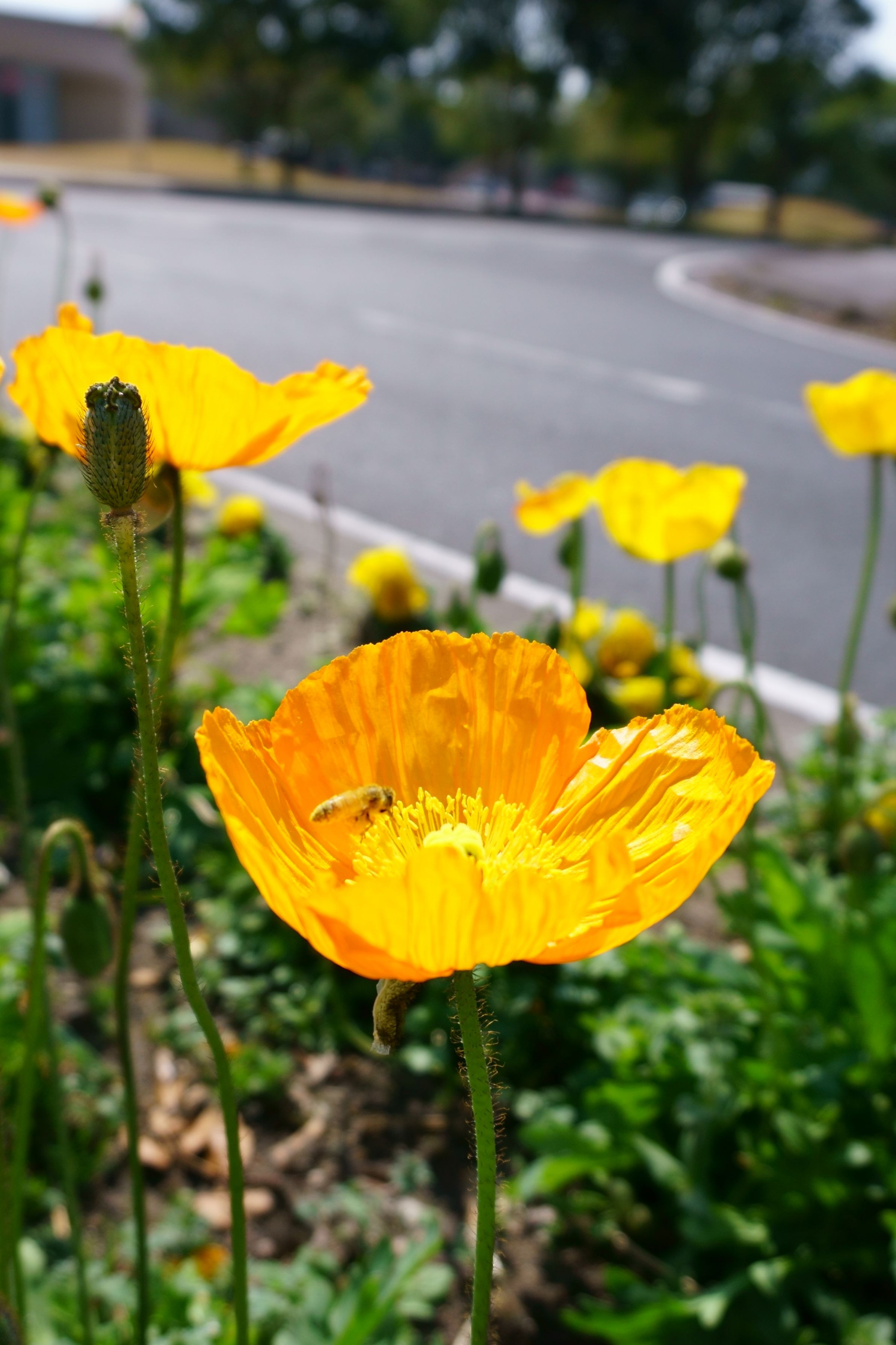 蜂も飛んでいて、陽気な一日でした。ポピーが鮮やかに咲いていました。