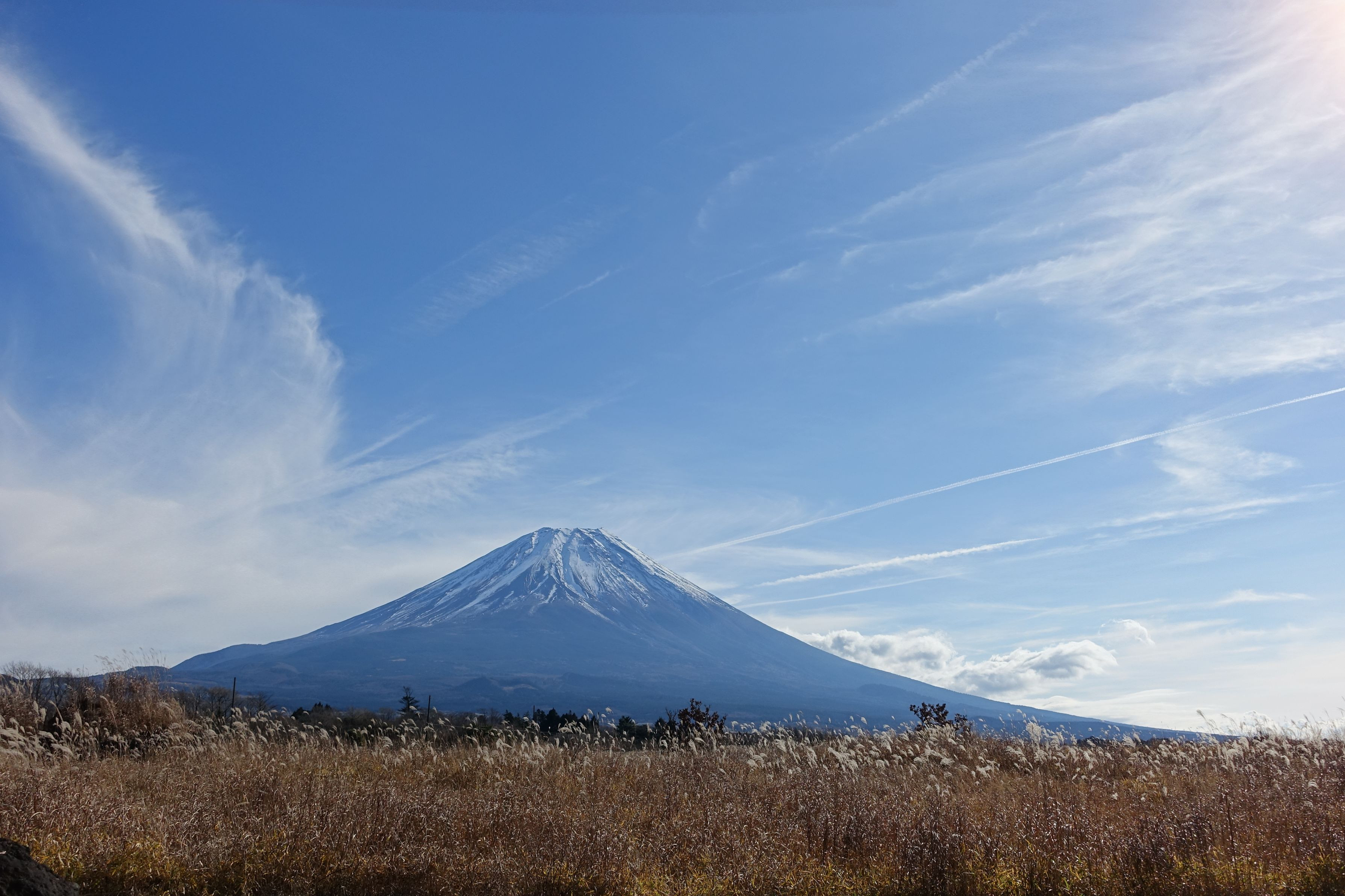 昨年秋の富士山です。 秋空に雲と富士山とススキが良い感じでした。