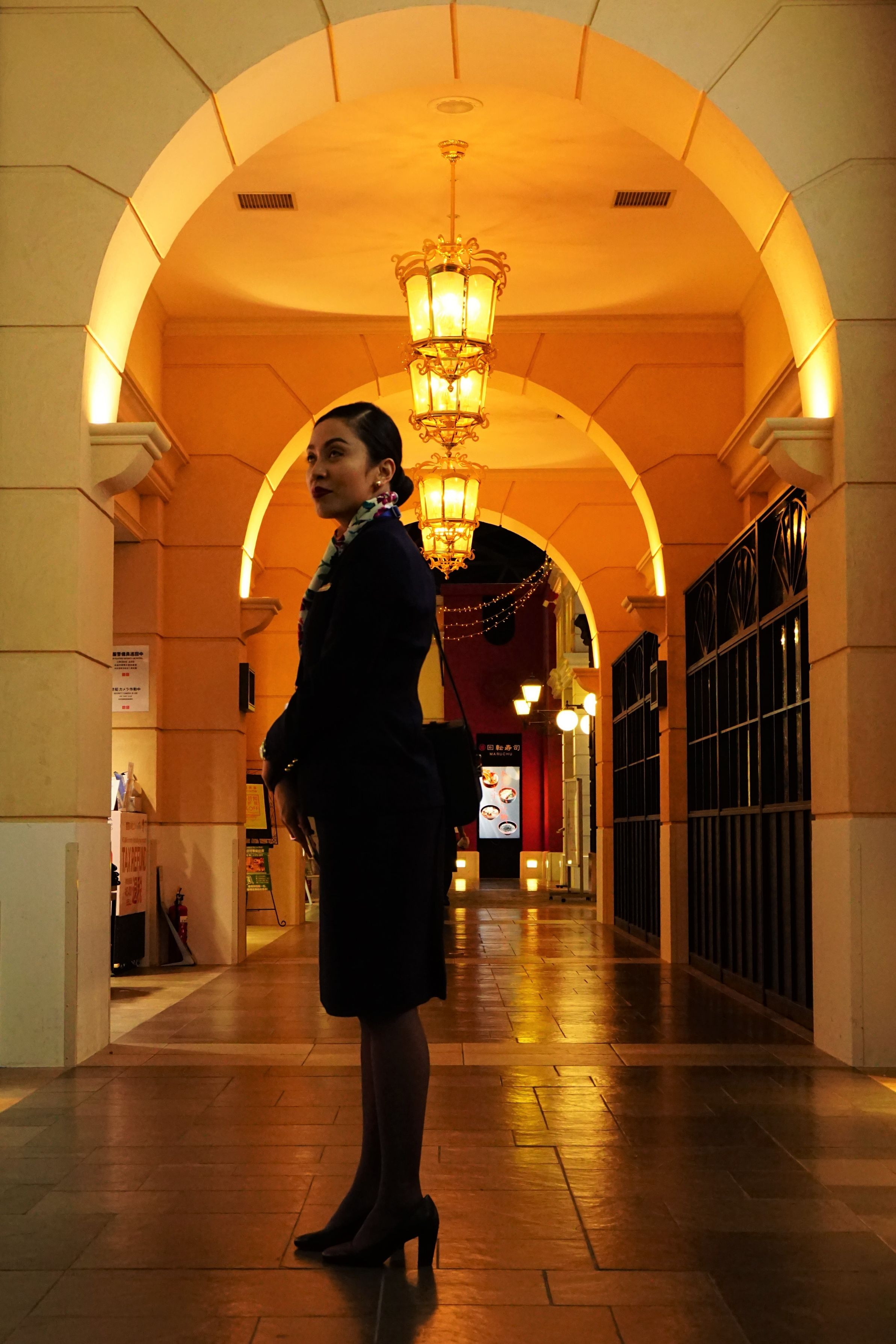 お友達のお買い物を待ちながら 熱心に携帯をチェックしていた後ろ姿のCAさん。 あまりに美しいお姿、お声をかけて お写真撮りたいとお願いすると にっこり笑顔で このようなポーズを取って下さいました。どこのお国の方かな?