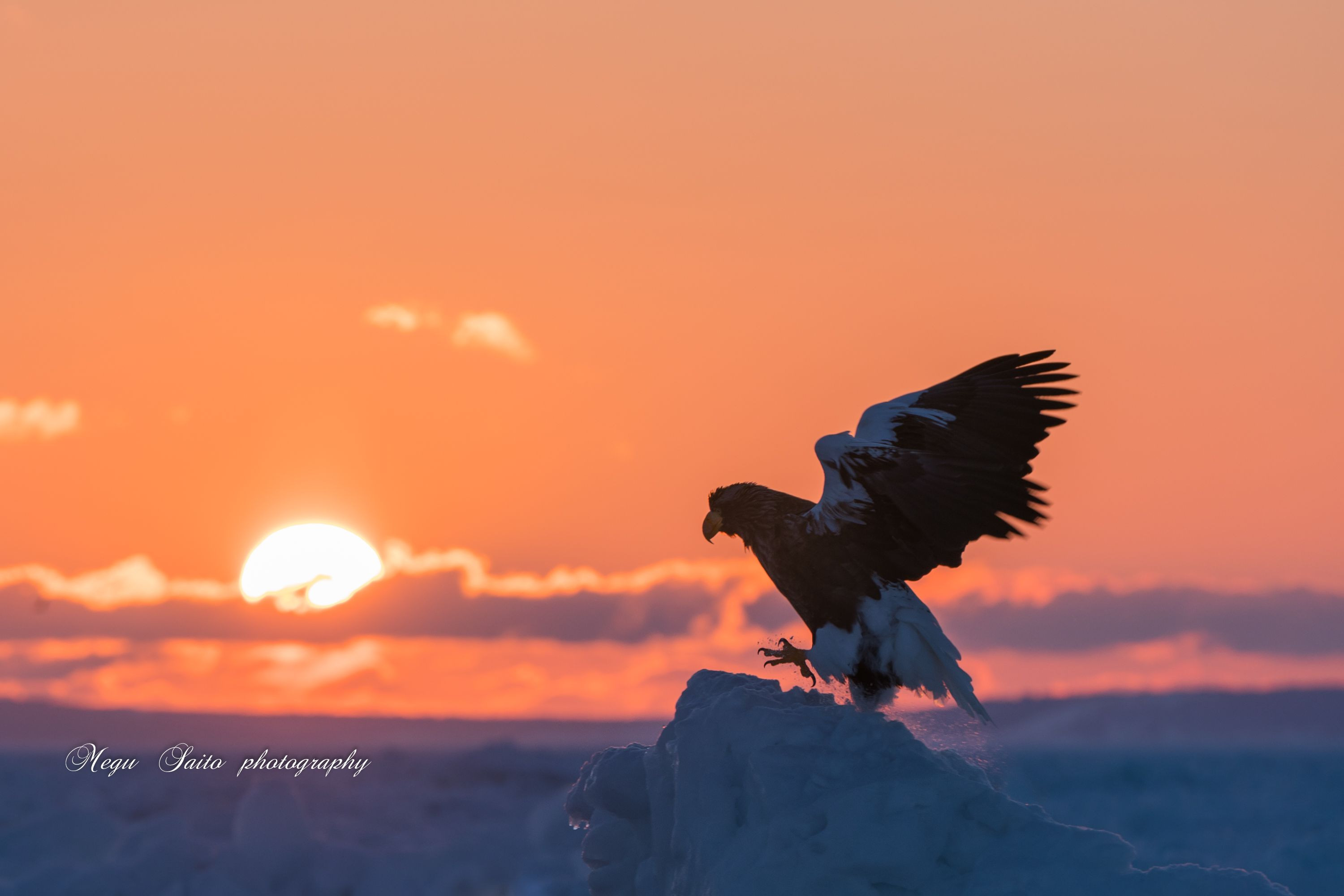知床の流氷は今日現在、去ってしまいました。 撮影の機会はほんの数週間だったようです。 そのなかで船を出せる風のない日、朝日が出る晴れ間・・・ この撮影ができたのは奇跡なのかもしれません。