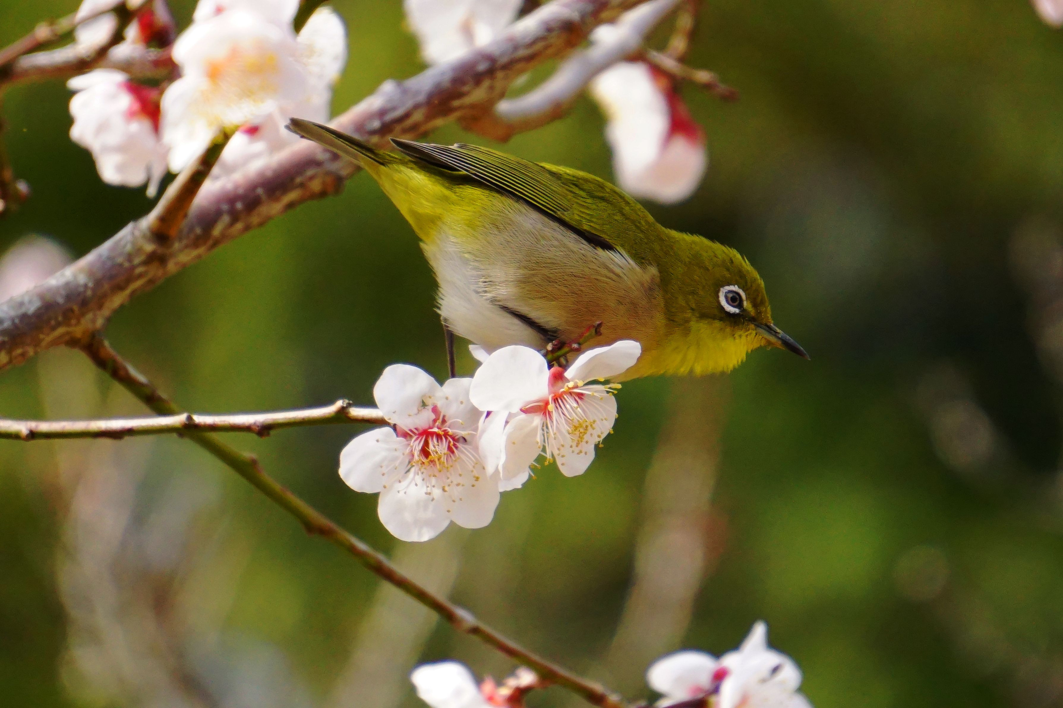 梅林も満開になりメジロが群れていました。