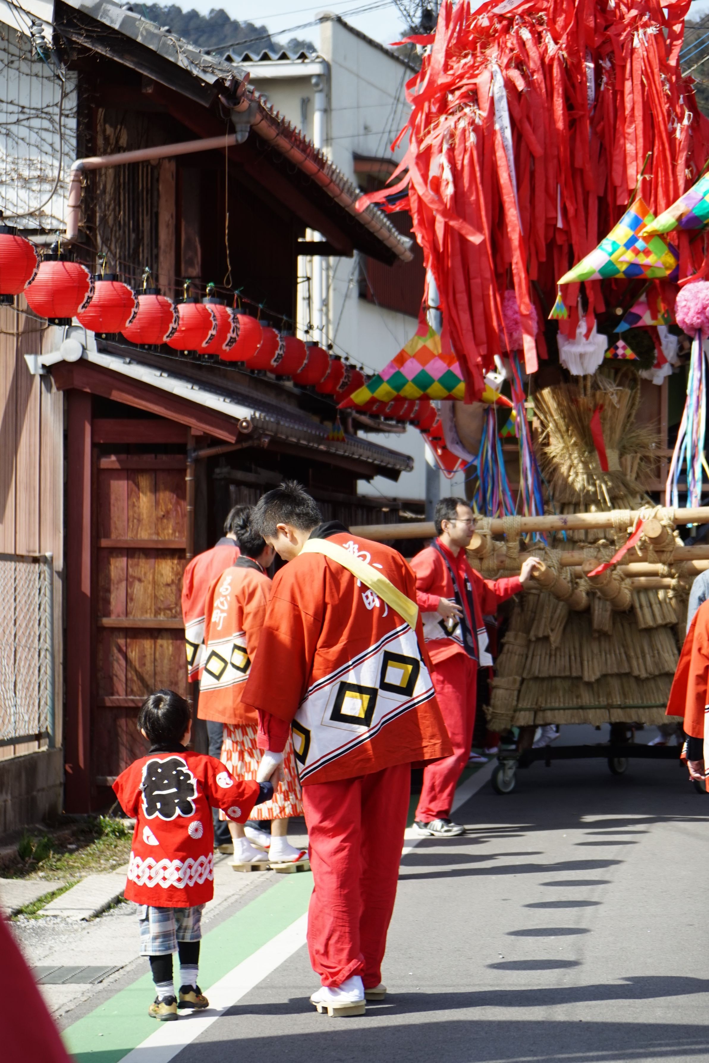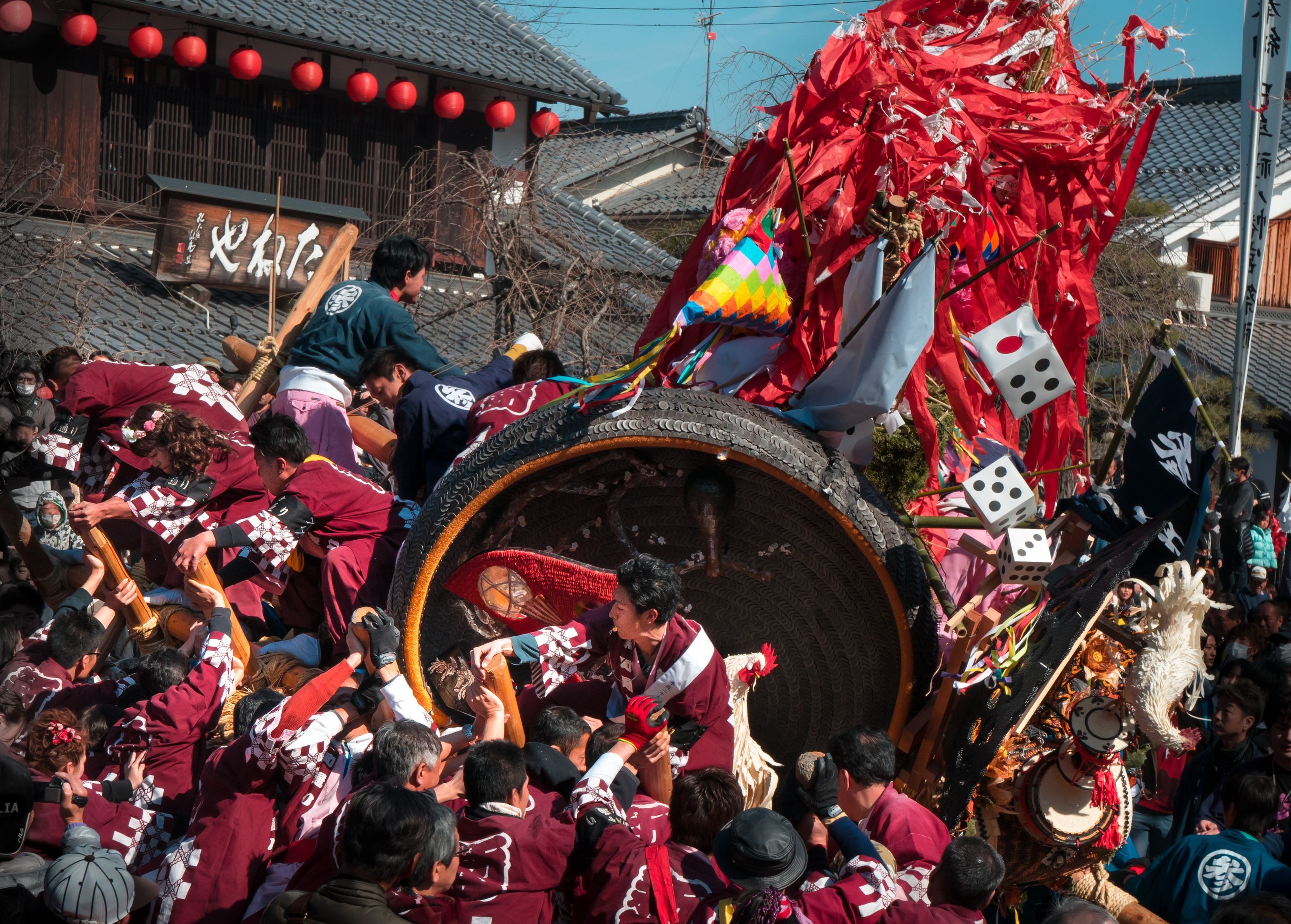 山車同士のぶつかり合いはメキメキ音がして持ち手の棒が折れたり、飾りが壊れたり、激しいお祭りです