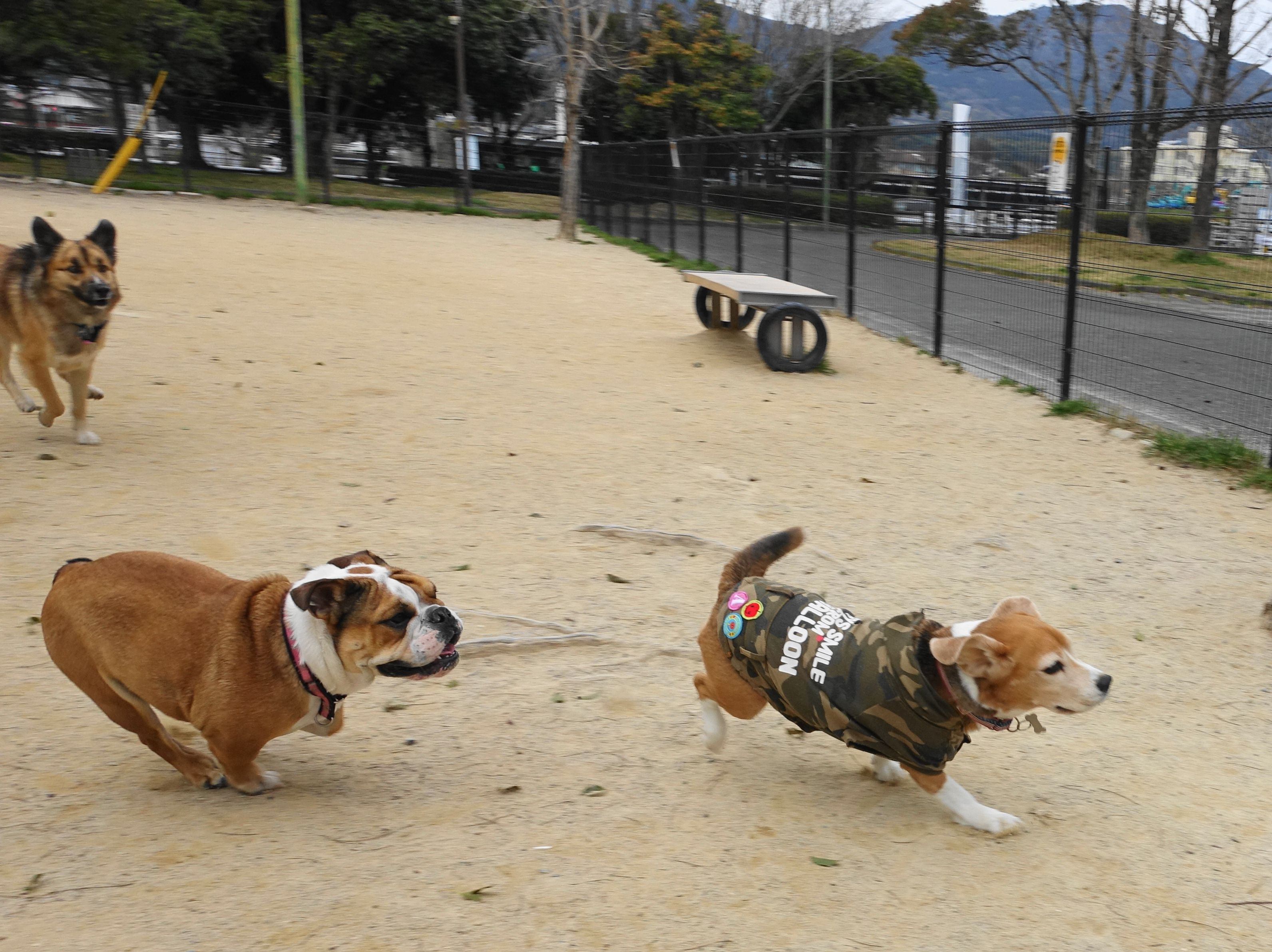 ドッグランで元気いっぱいのブルちゃんと遊びました。 ブルちゃん、結構早いんですね~^^
