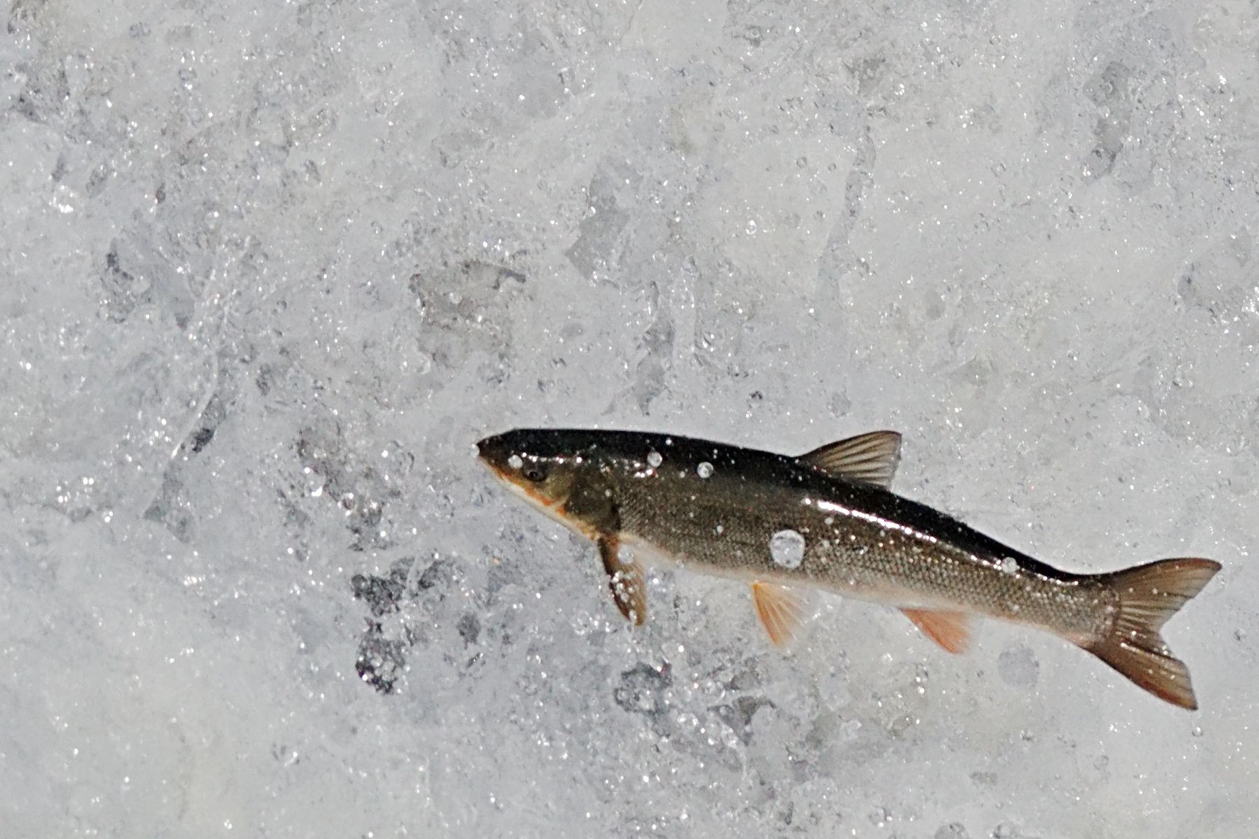 多摩川を遡上し、堰をジャンプするマルタウグイ。 オレンジ色の婚姻色が鮮やか。