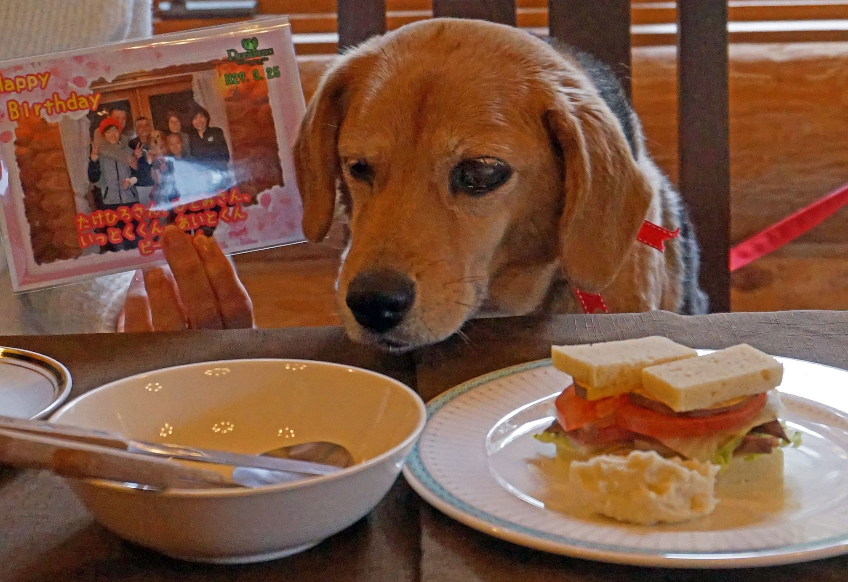 この日泊まった愛犬OKのコテージのこれがワンちゃん用のご昼食。シェッフ一生懸命つくってくれましたが、残念ながらわが家の愛犬にはちょっぴり不向きでした。