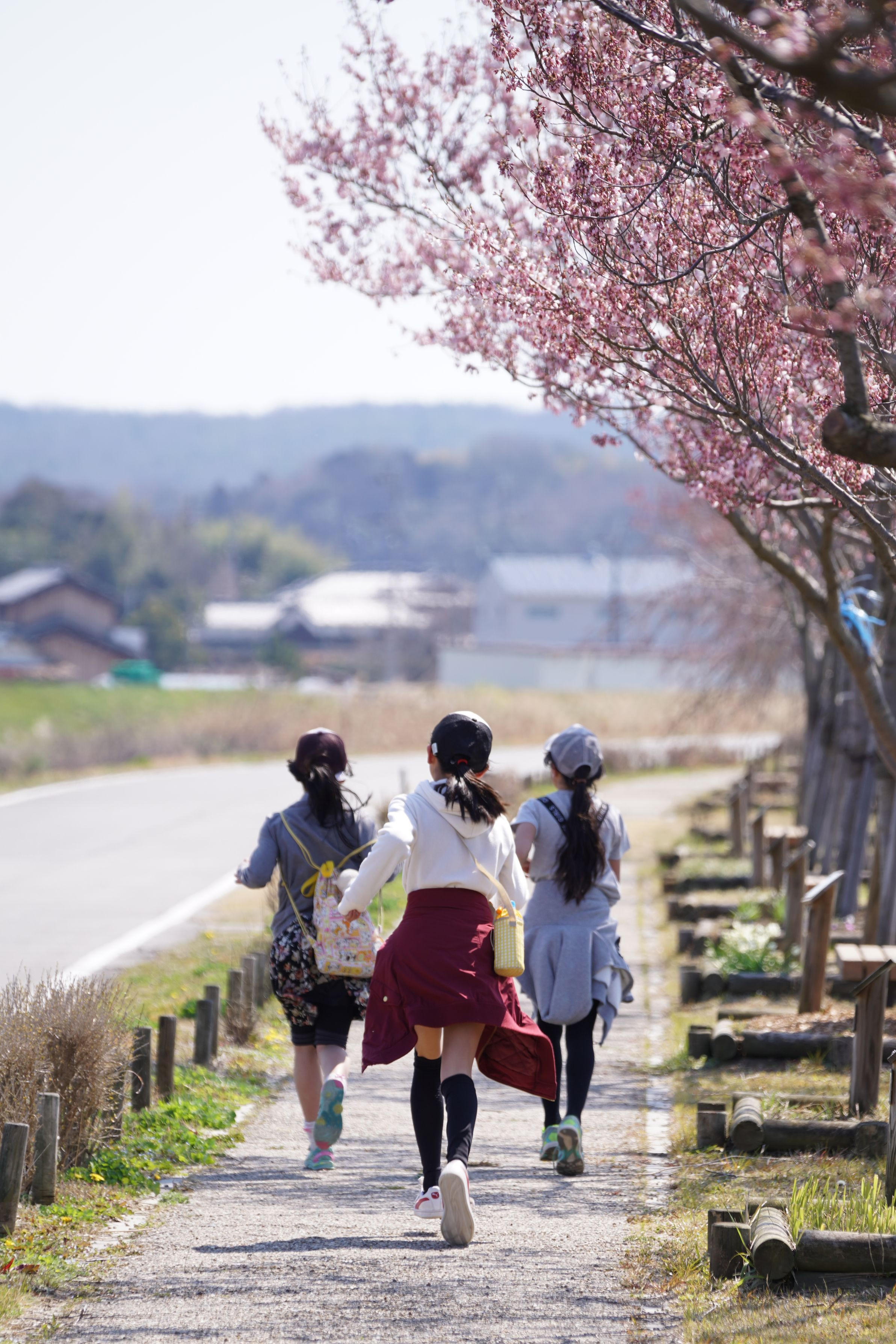4kmのサクラつつみ回廊を駈ける少女達 こんにちわぁ~の挨拶とともに駆け抜けていきました (#^_^#)