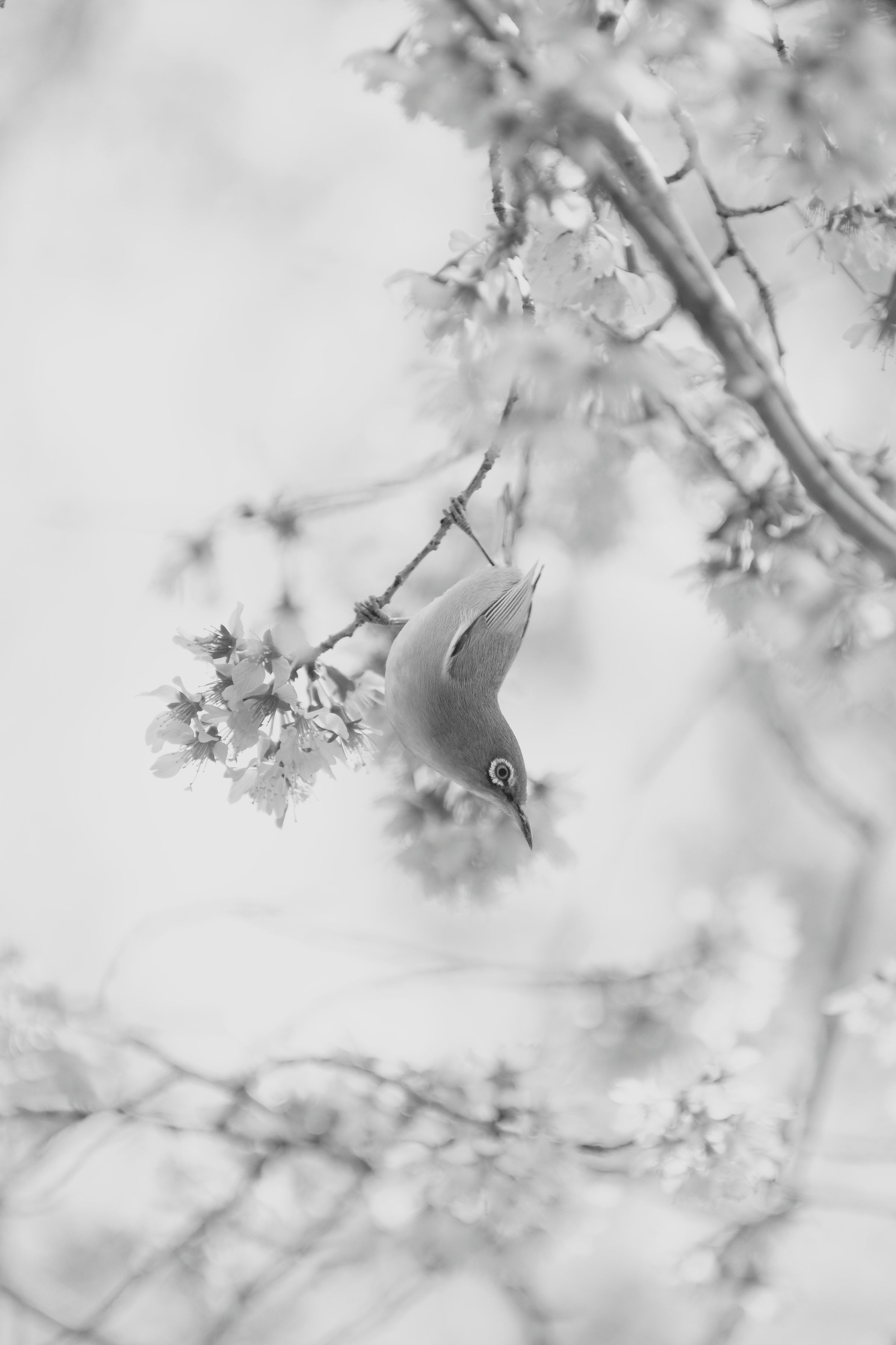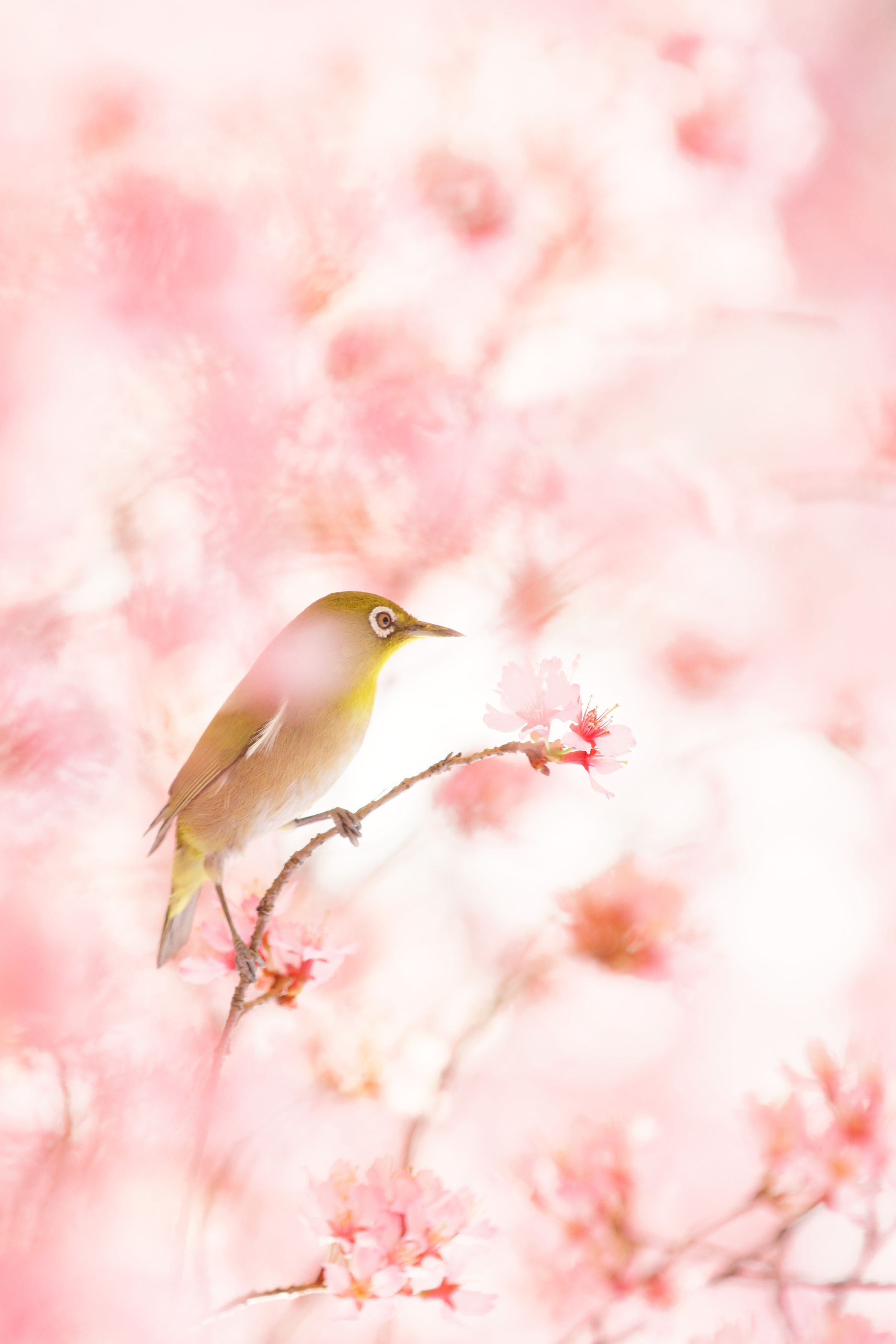 今年は満開で撮ることが出来たオカメ桜とメジロ。 minolta70-200G sigma50-500 手持ち、MF。