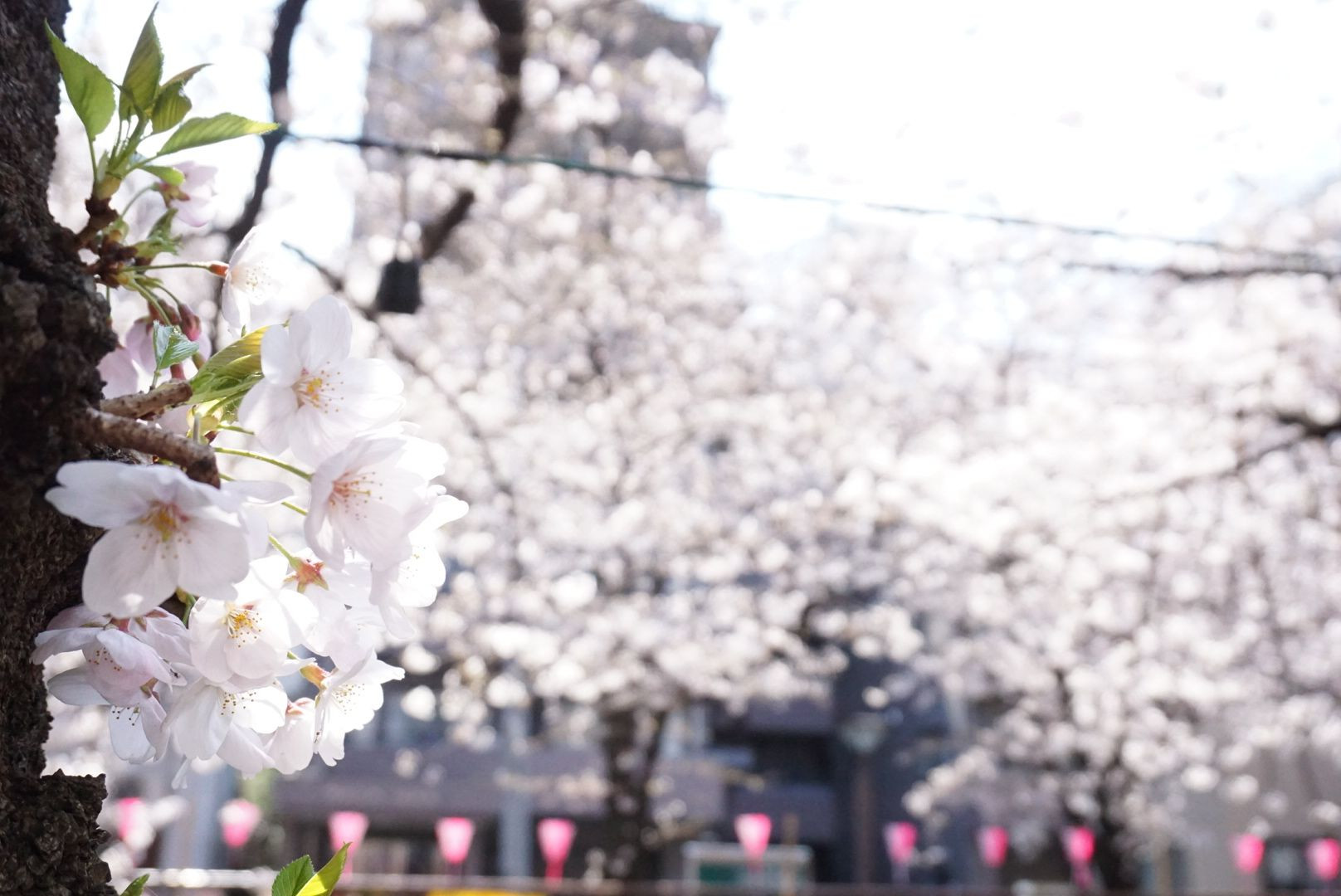 中目黒桜まつりへ行って来ました。遠くに提灯を入れることで桜まつりを表現しつつ春の訪れをくっきり写し出してみました