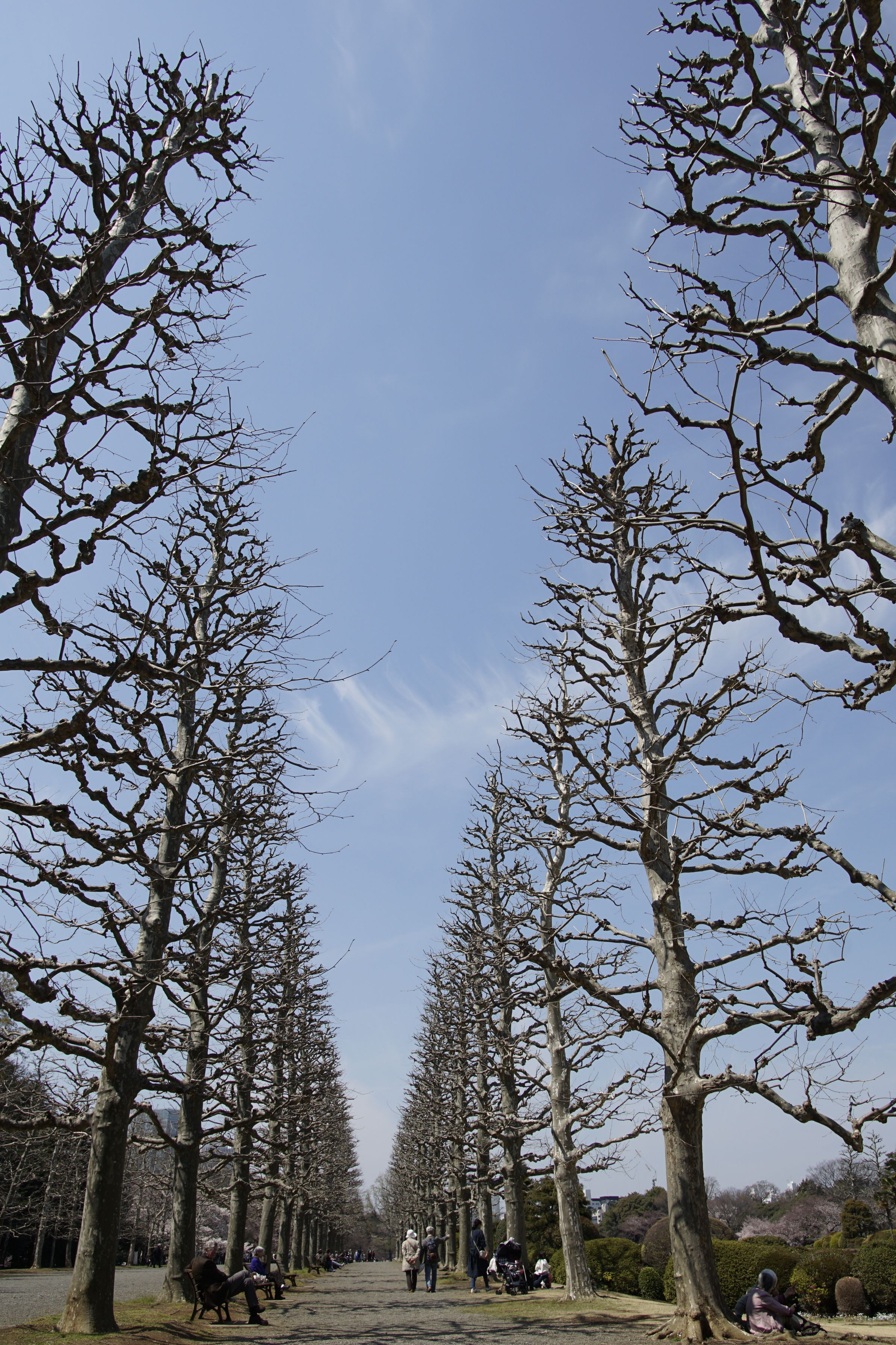 新宿御苑に桜を観に行ってきました。 そこには、落葉したプラタナスの並木が、不思議な景観を形作っていました。