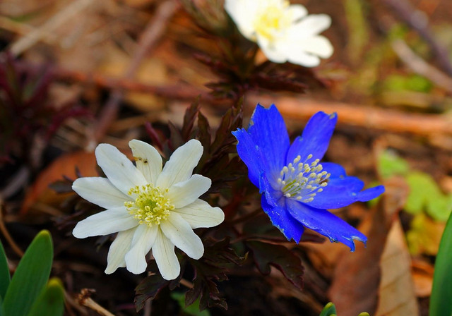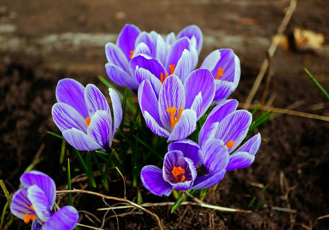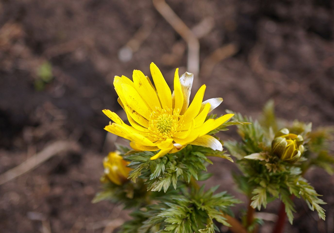 早春の庭に