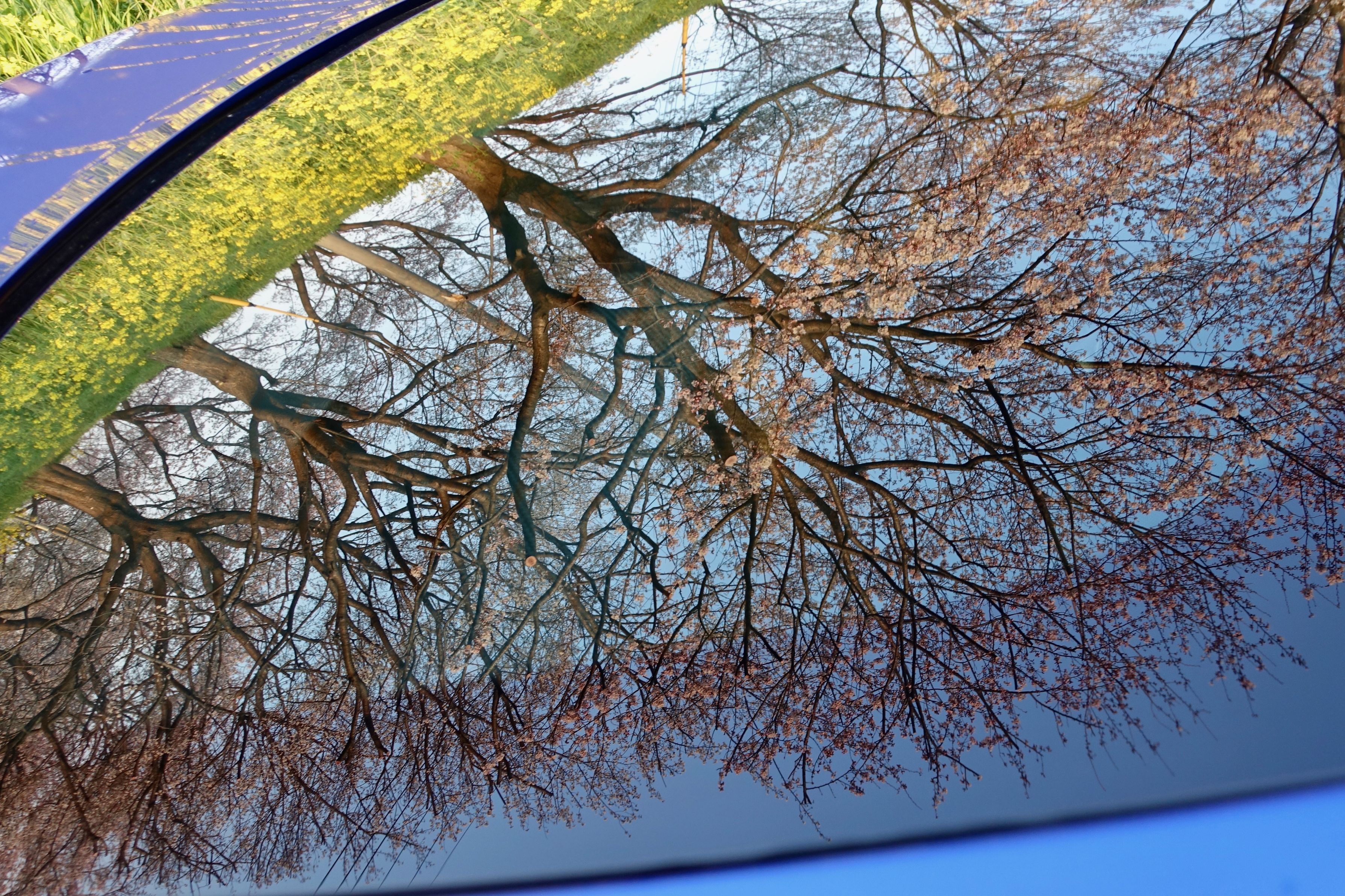 愛車のリアウインドに映ったものです。