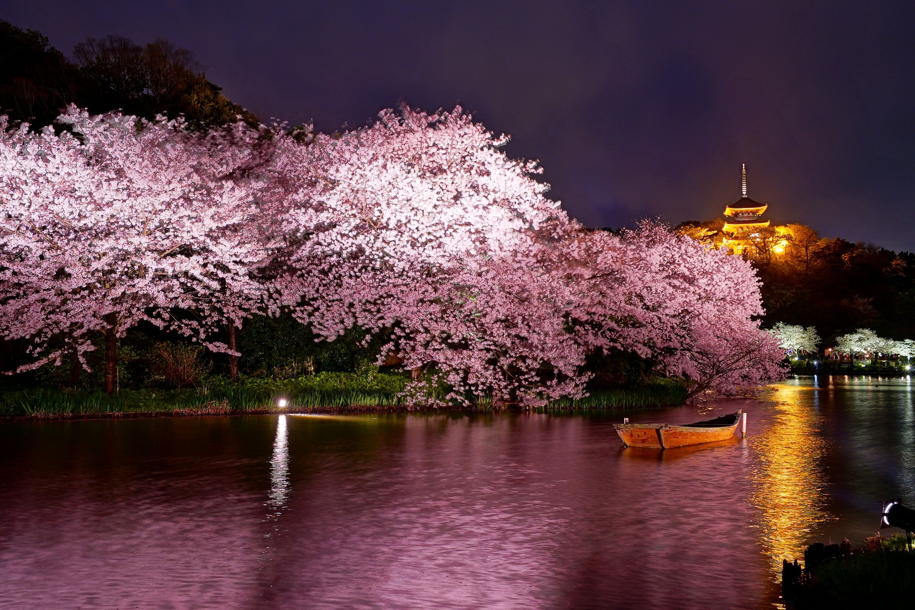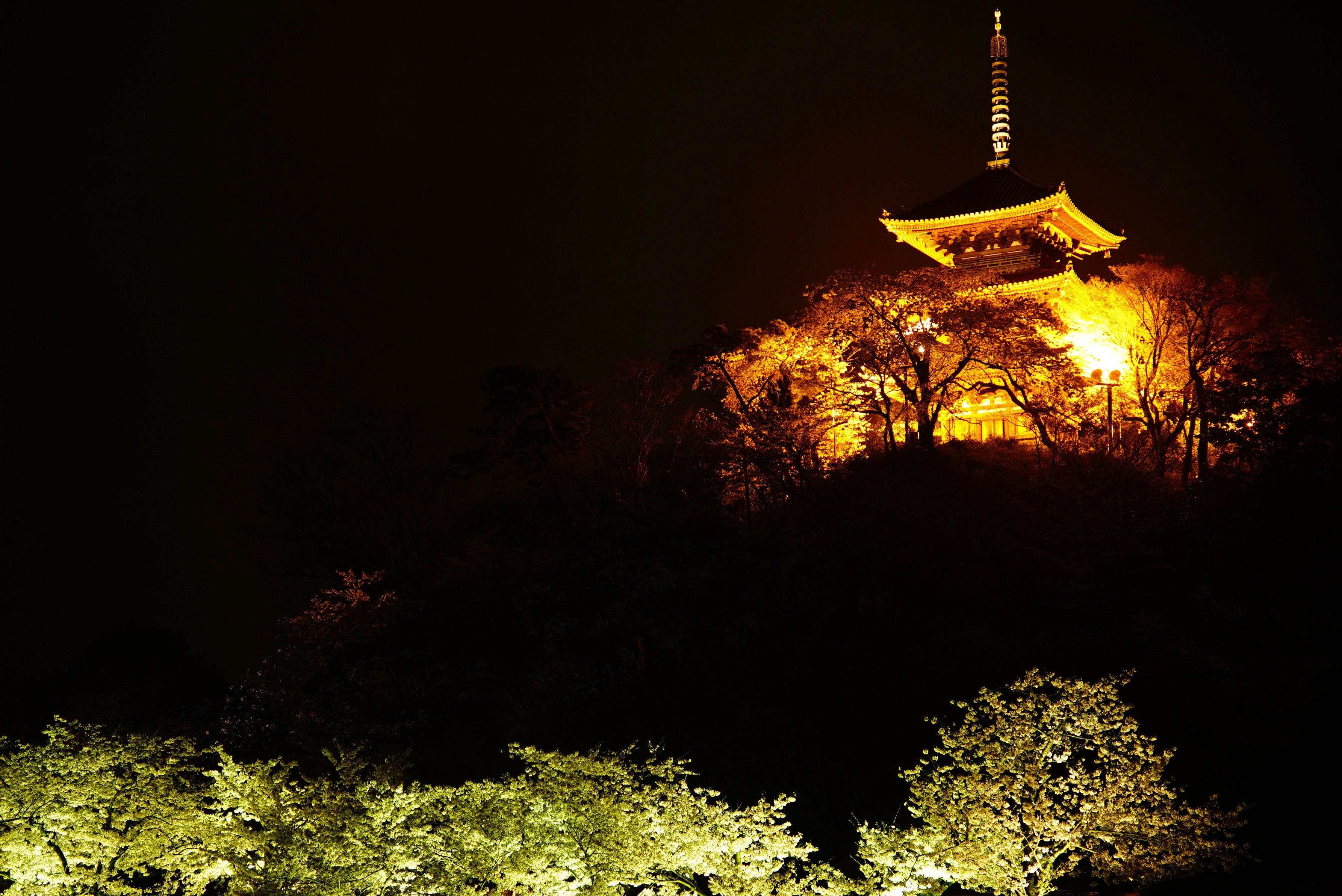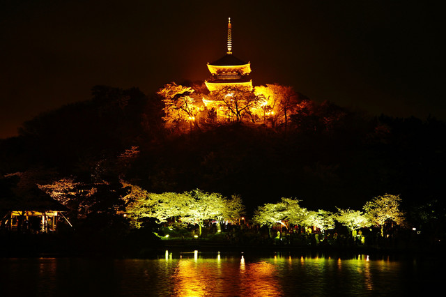 三重塔は桜と共に輝いていました。