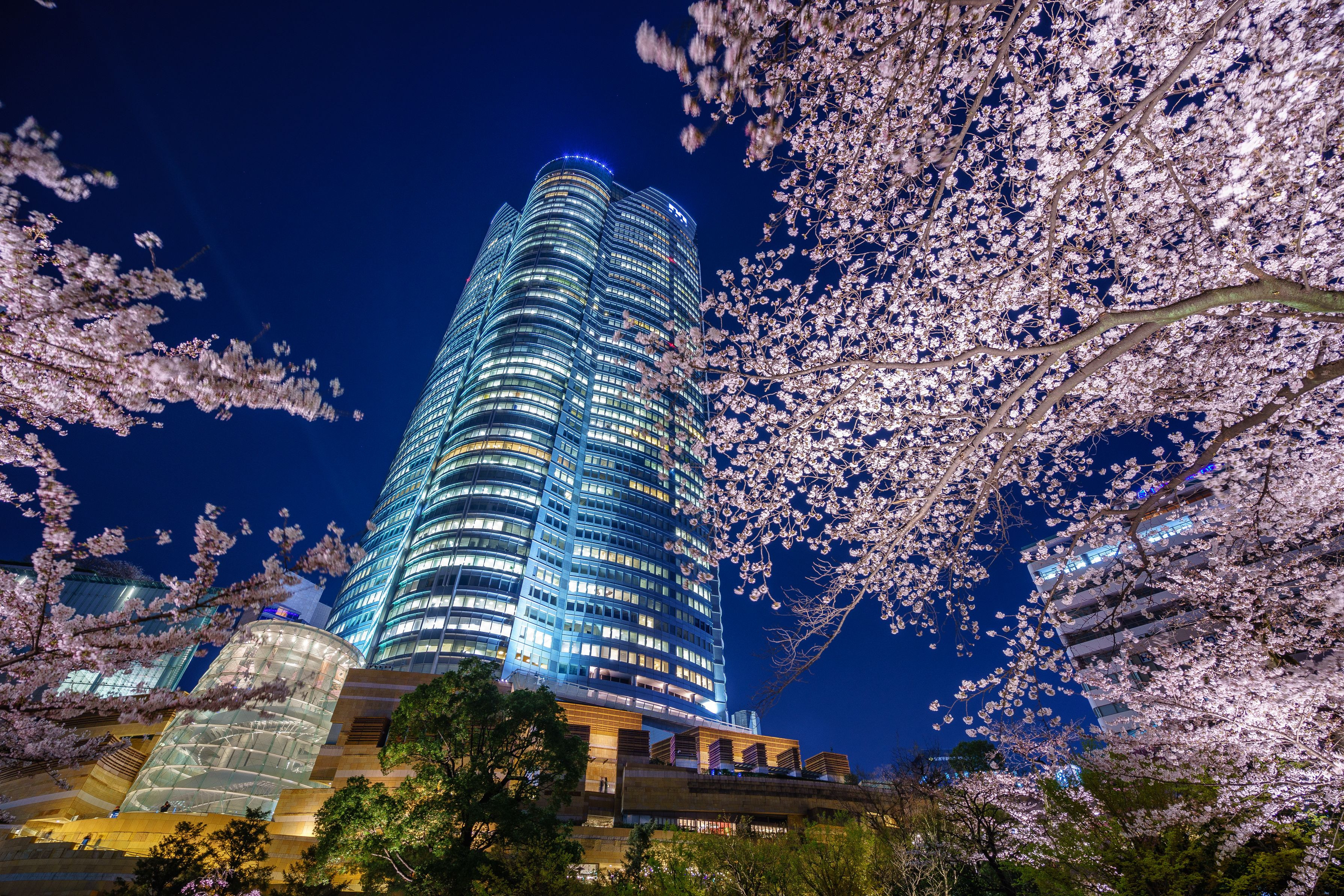 毛利庭園にて。桜越しの六本木ヒルズです。