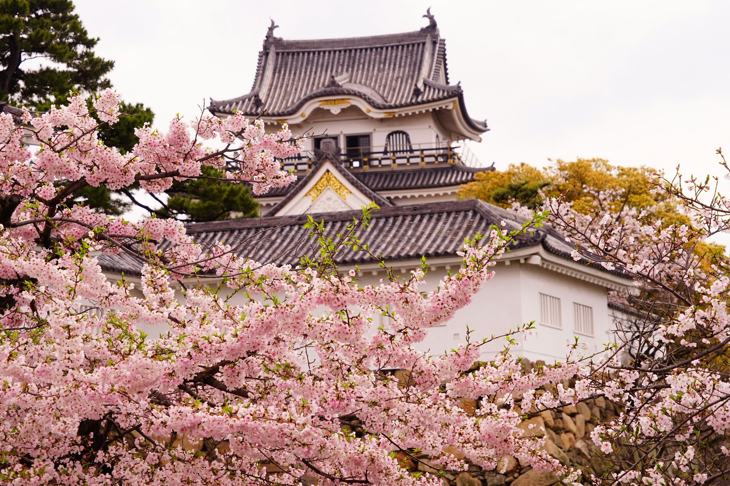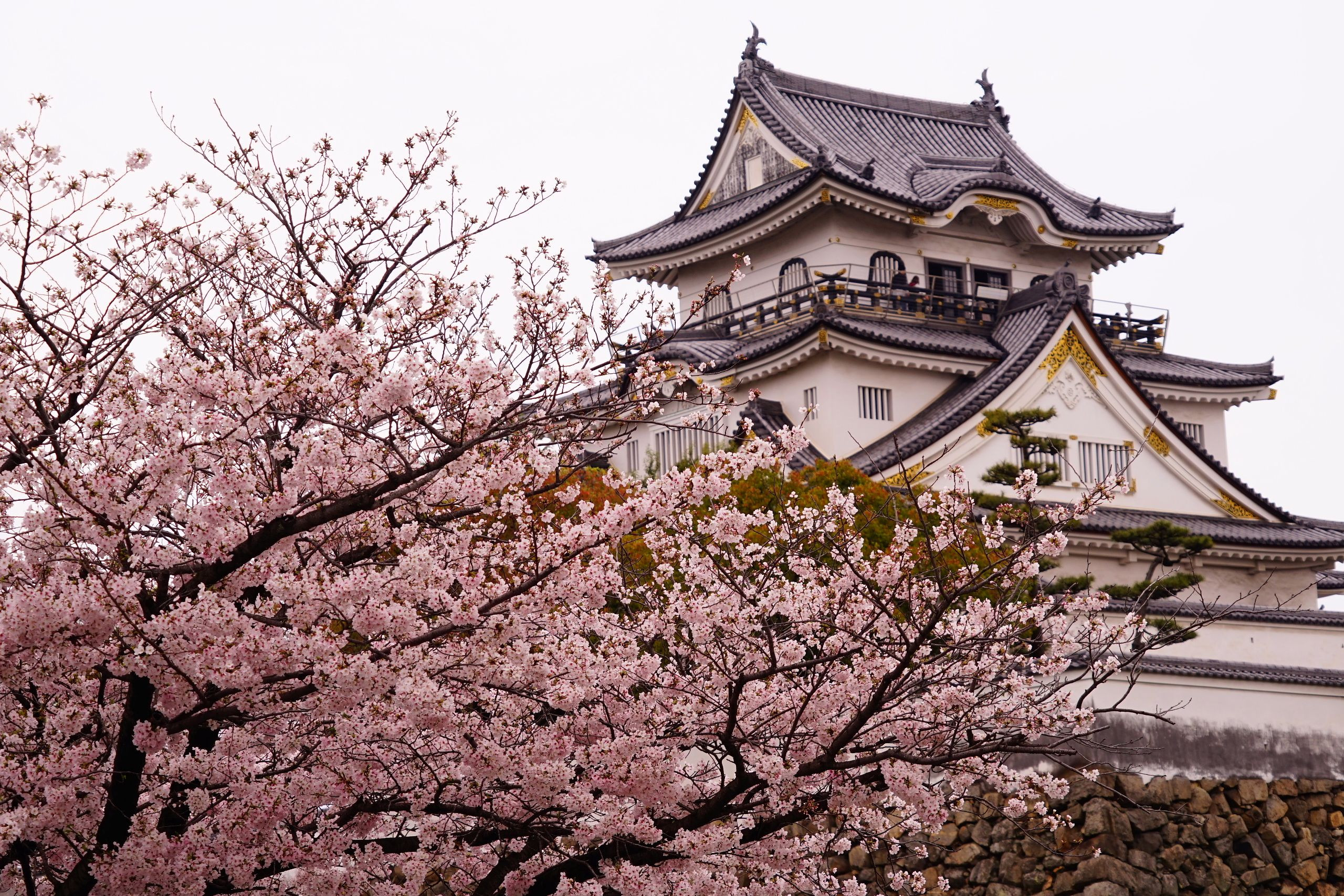 4月9日の日曜日に雨が止んだ午前中に岸和田城へ桜の撮影に行ってきました。桜は満開でしたが、生憎の曇天で青空は望めませんでした。