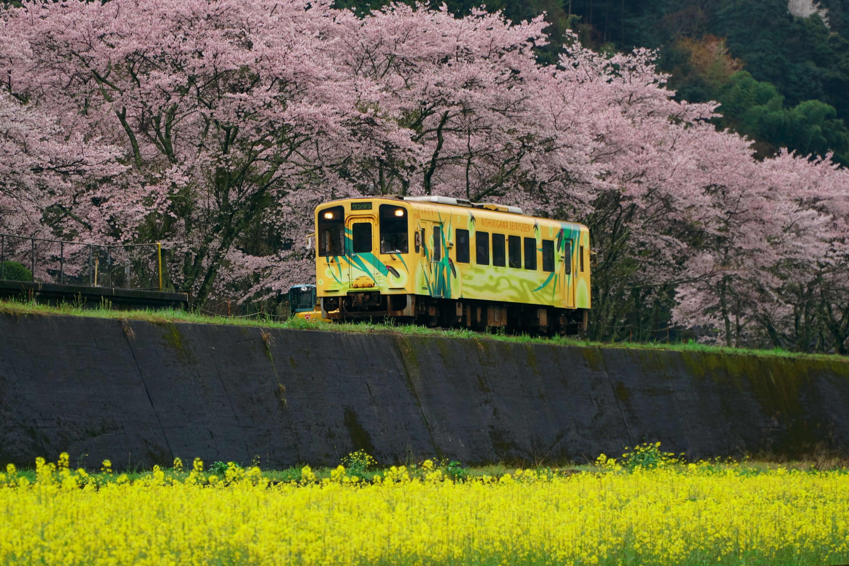 小雨交じり、さくらが満開だろうと思い。前回寂しかった菜の花も賑やかなかと