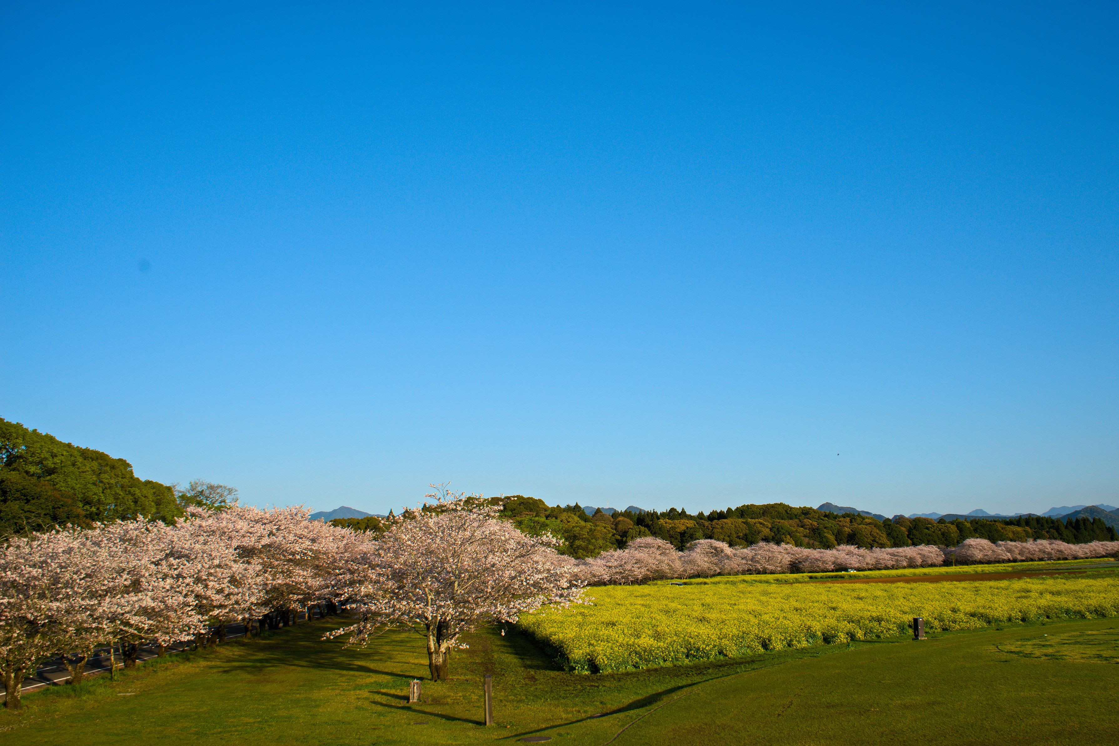 早朝、西都原の春の風景です