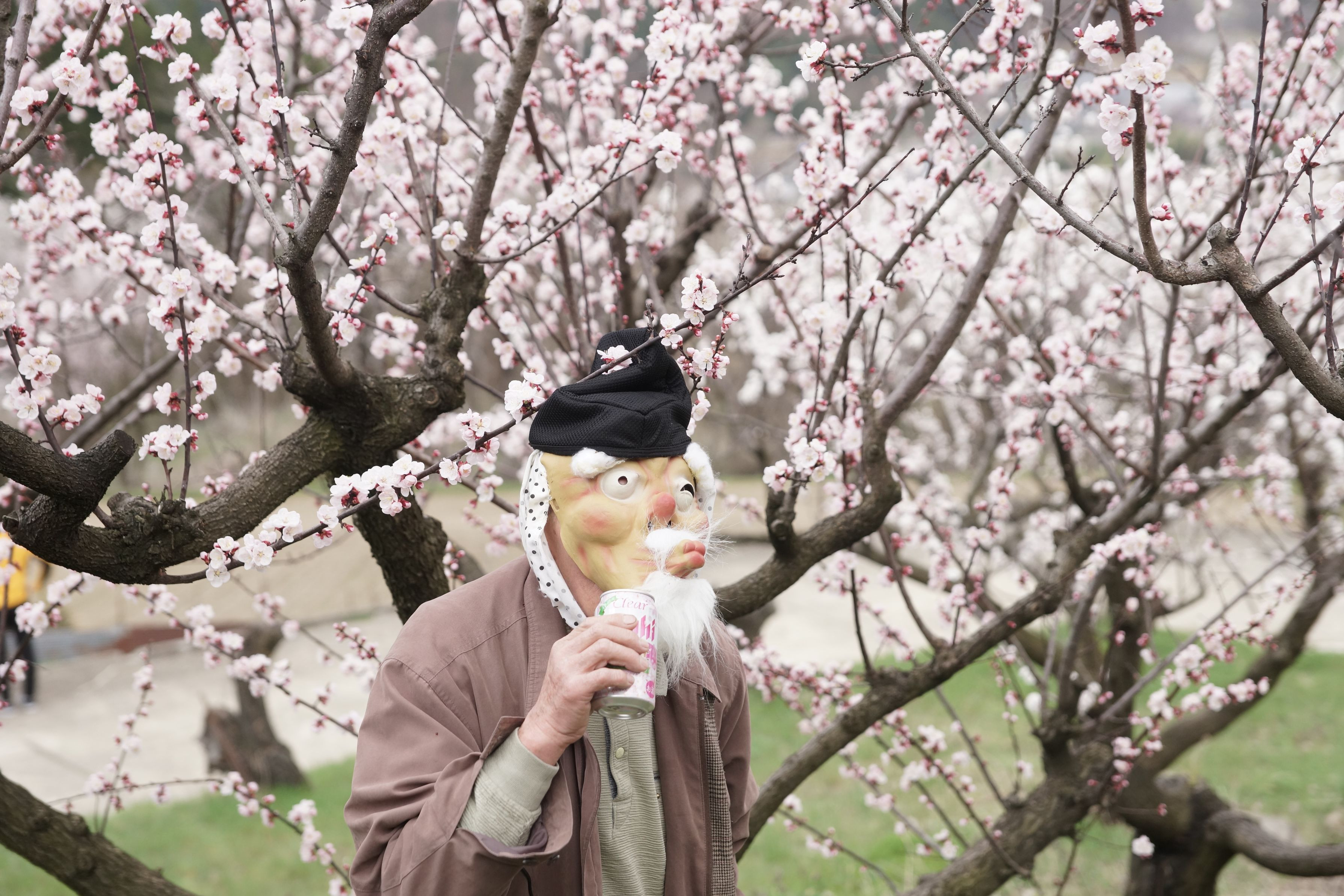 花坂爺さんあんずの花をさかせました自分でさかせお花見です