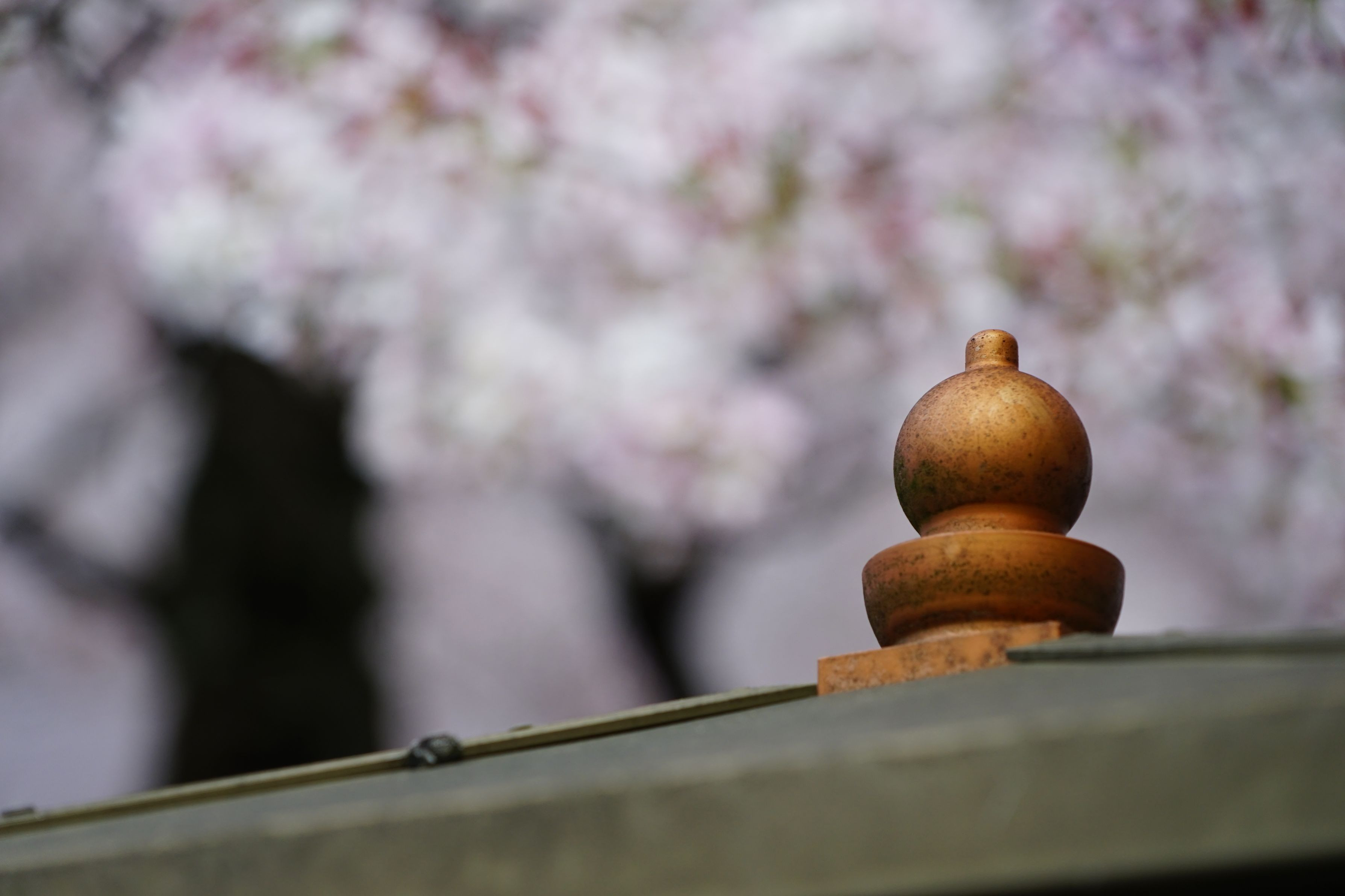 京都のさくら、瓦とともに