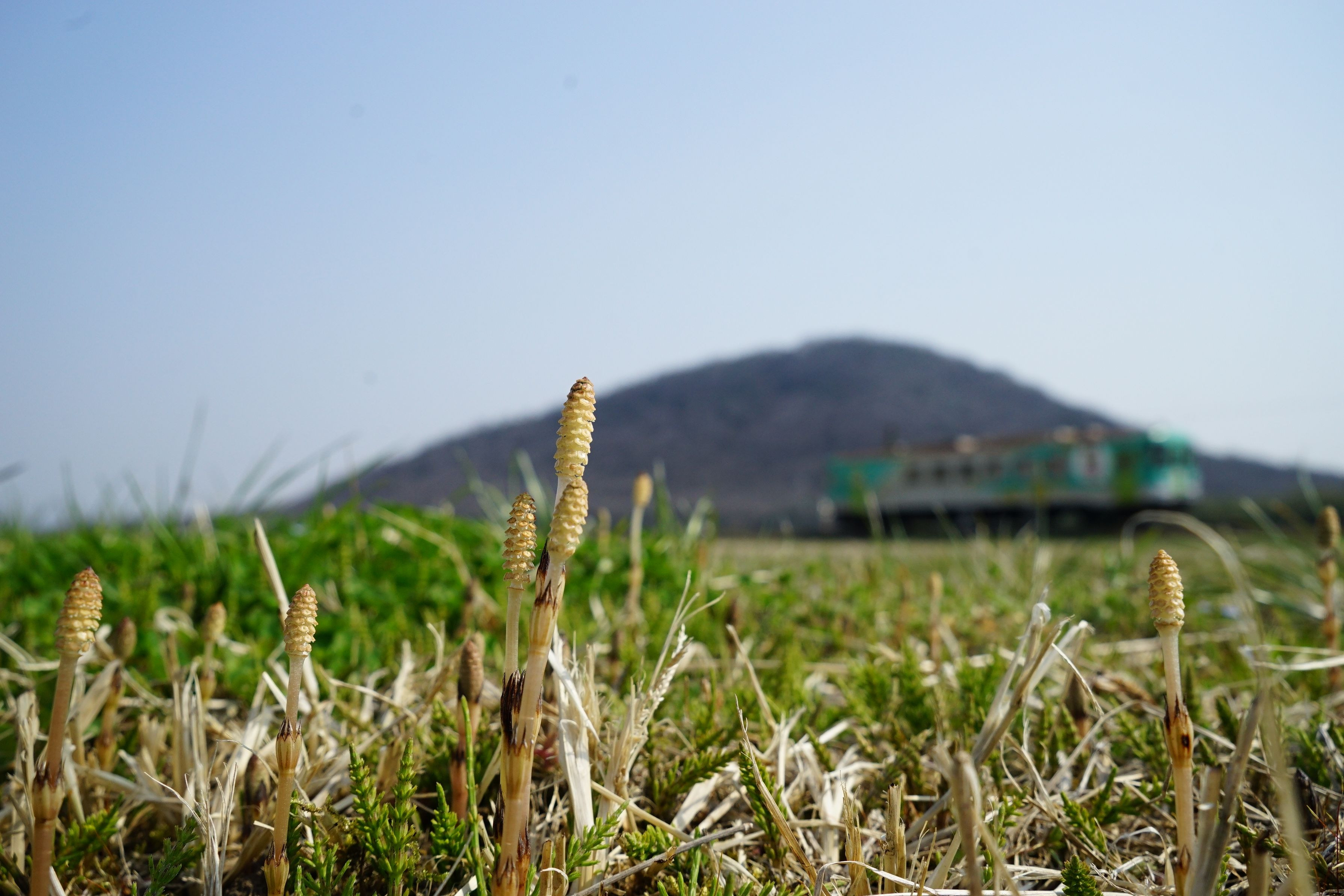 長かった冬も終わり、少し春めいて来たとある日、小春を探しに沿線をブラブラ。目線を下げて見たら春を待ち望んだ土筆達が目覚めていました。もっとも背の高い兄さん土筆が周りの子土筆達に声をかけていました。「みんな春だよ」って。