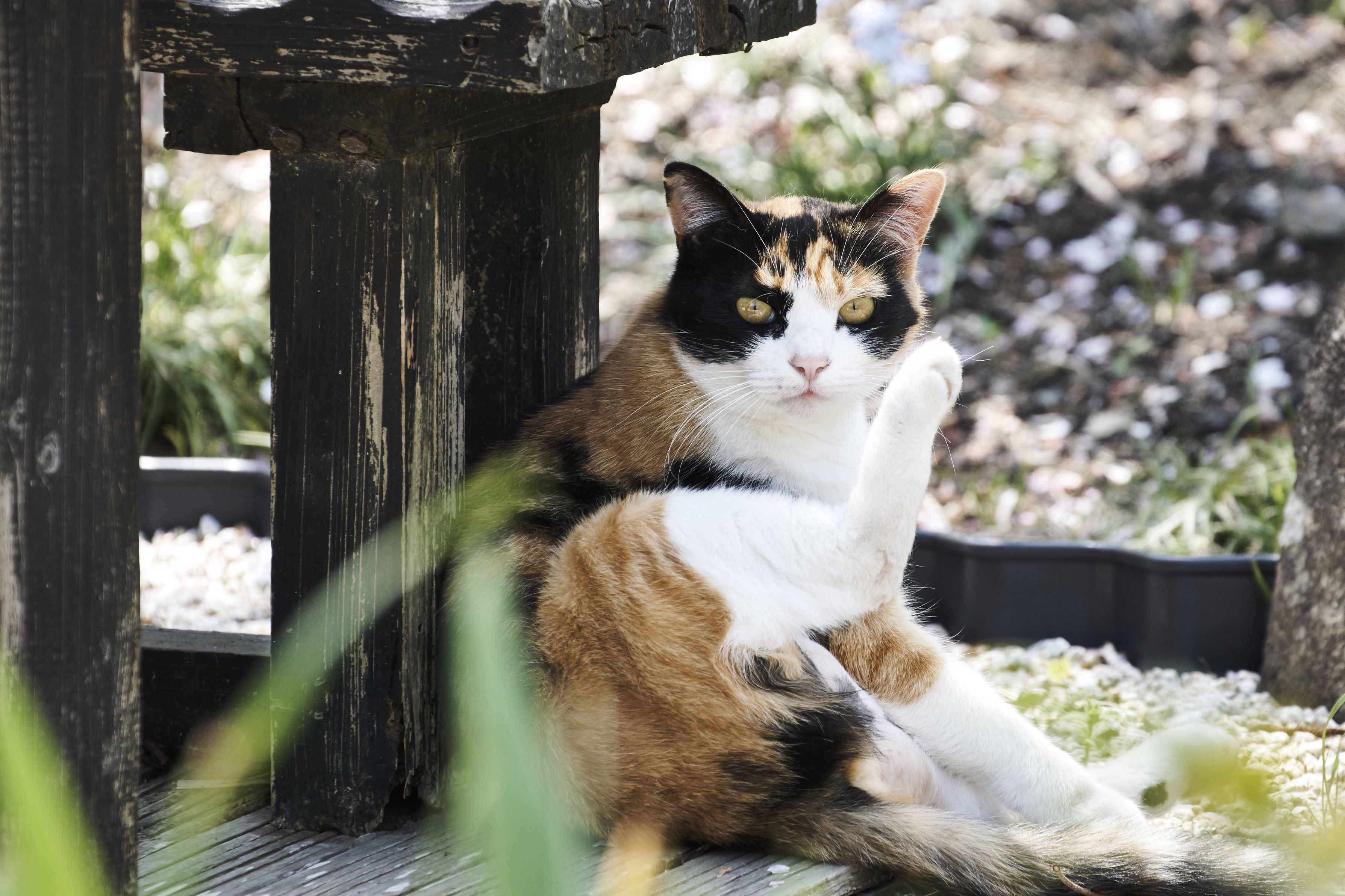 気難しい三毛さんに会った・・ 2m以内には近付けない・・ 声を掛けても、睨まれる・・ 仲良くなれるまで、何度も通わなくちゃ