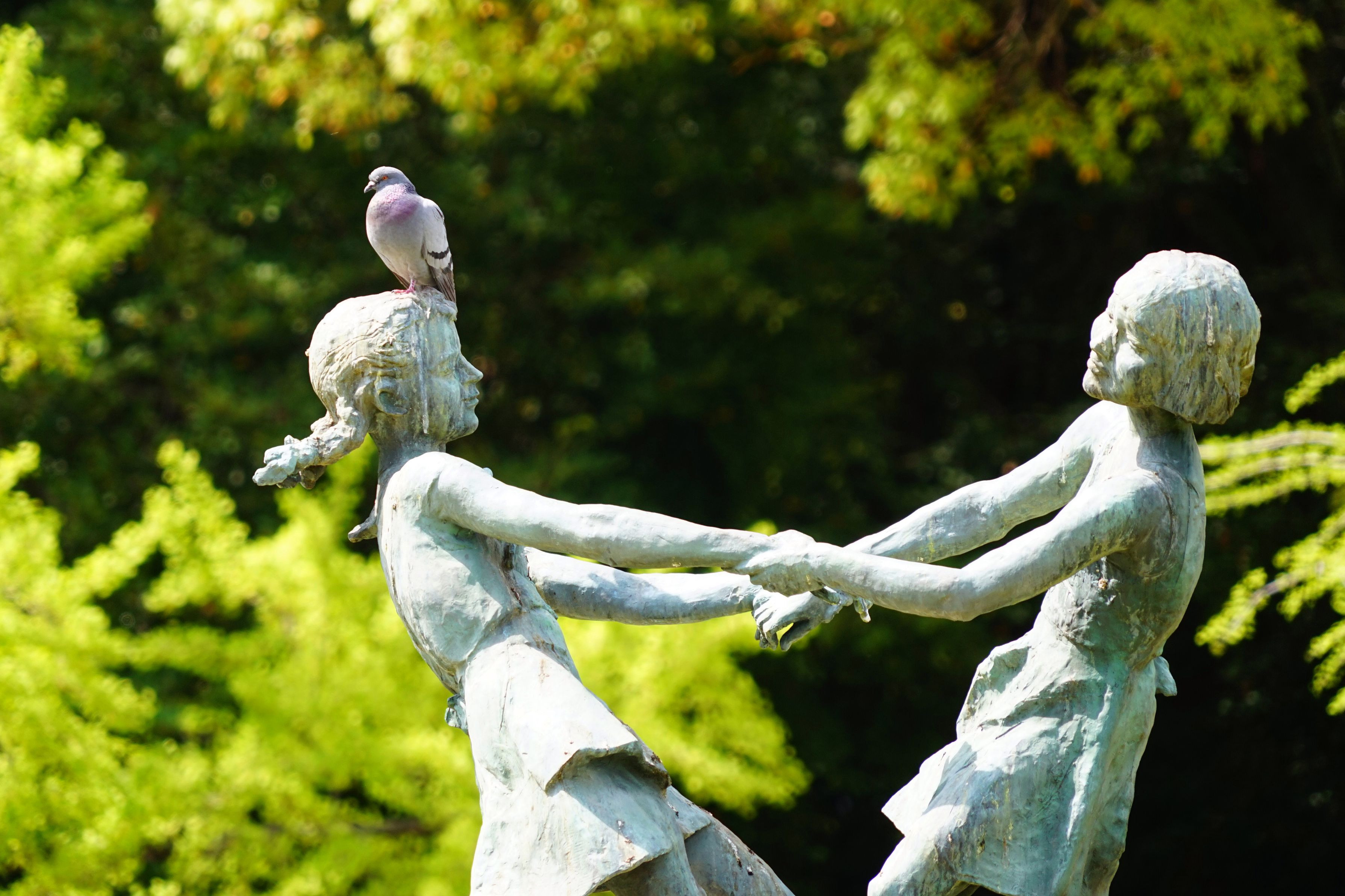 大阪・長居公園の「友情」の像に鳩が一休みしていました。